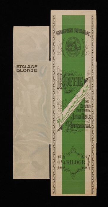 verpakking, motief, blad, vlakke figuur, ovaal, cirkel, koffiekan, koffiefilterpot, spaarzegel, zegel (6)
