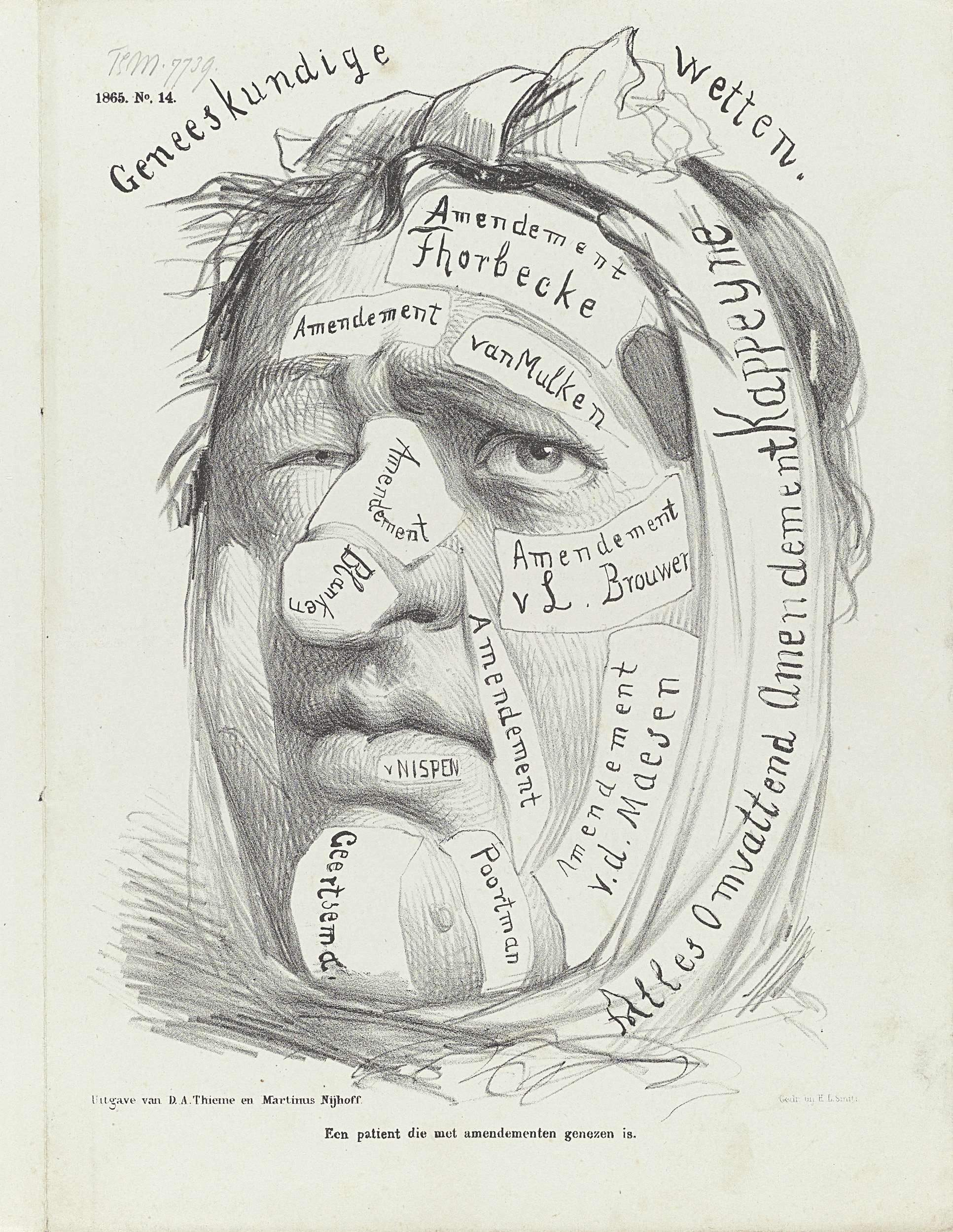 Spotprent op de vele amendementen op de Geneeskundig...