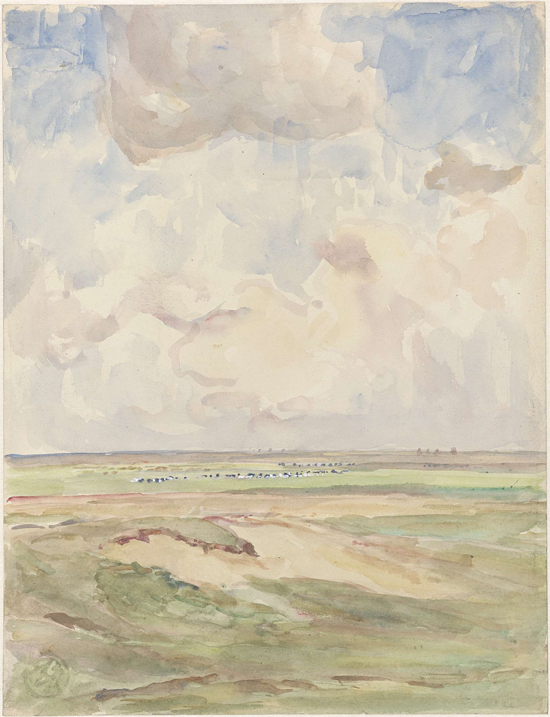 Landschap met kudden in een grasveld