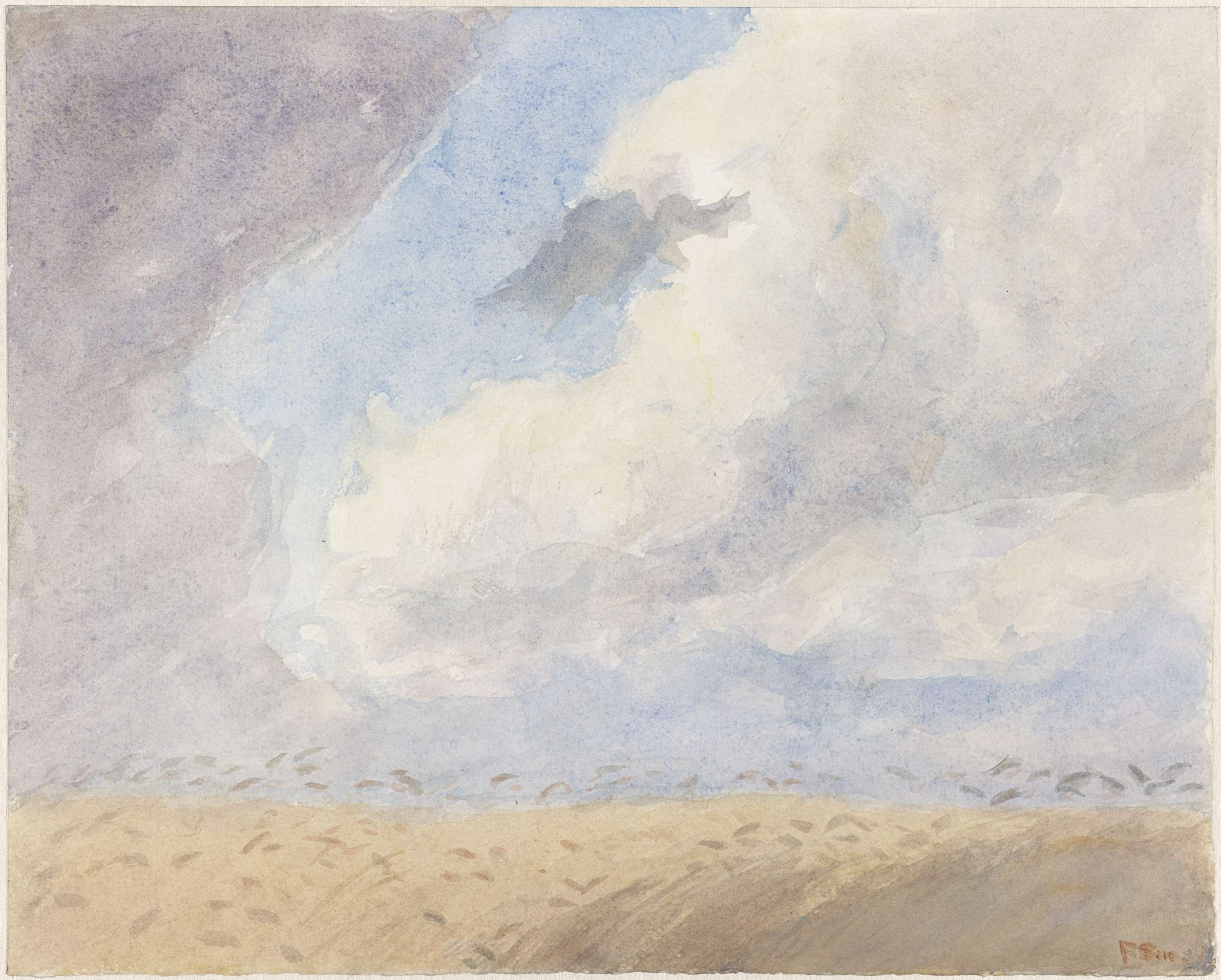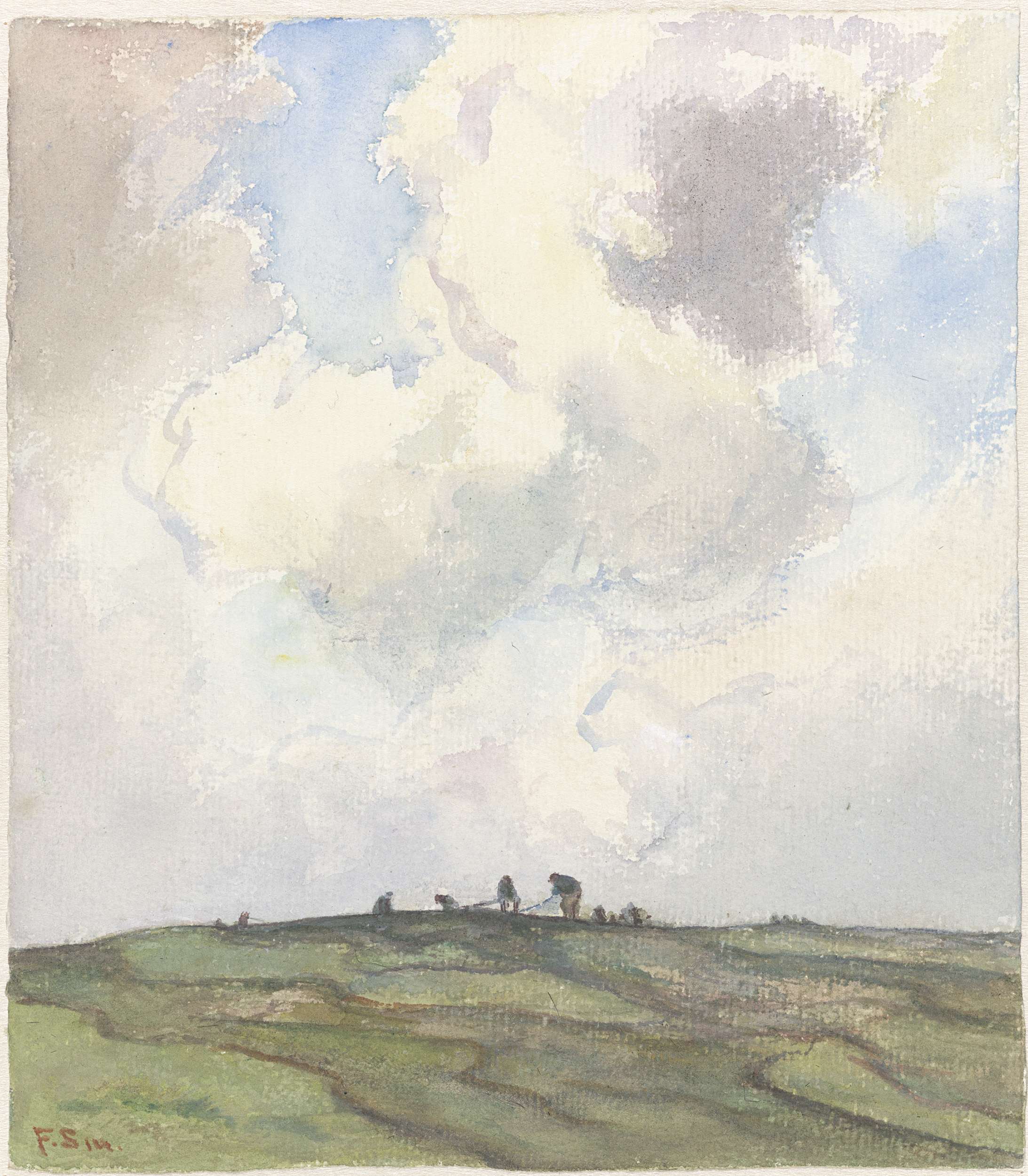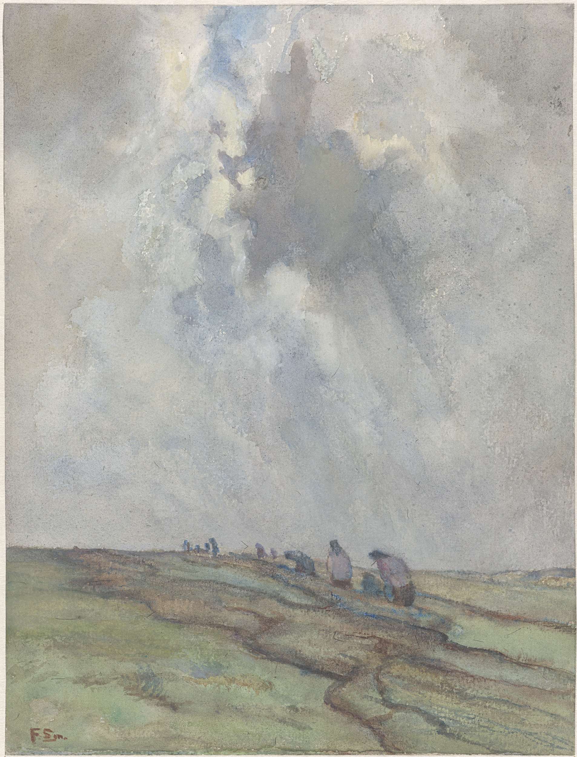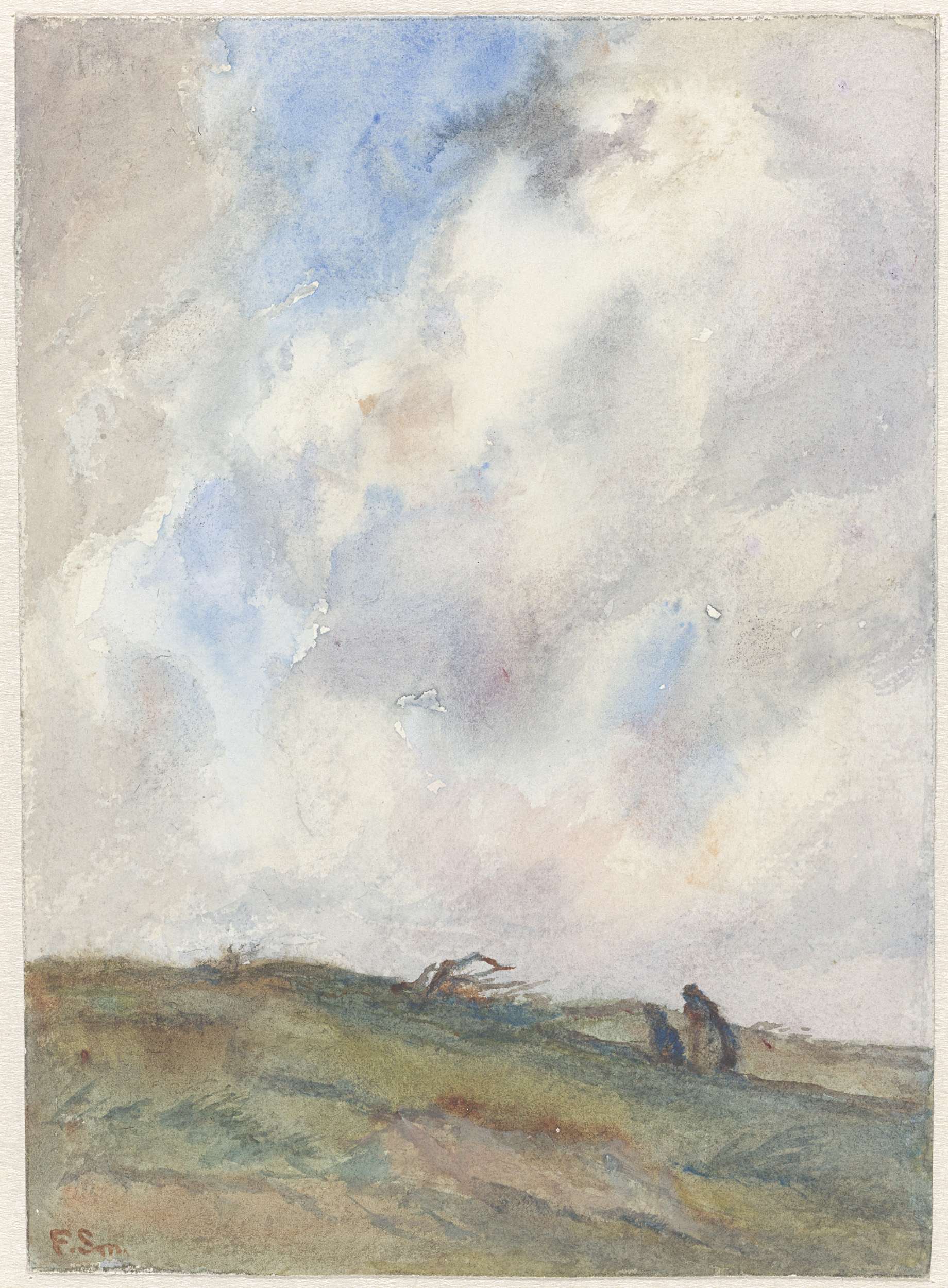 Duinlandschap bij storm met twee figuren