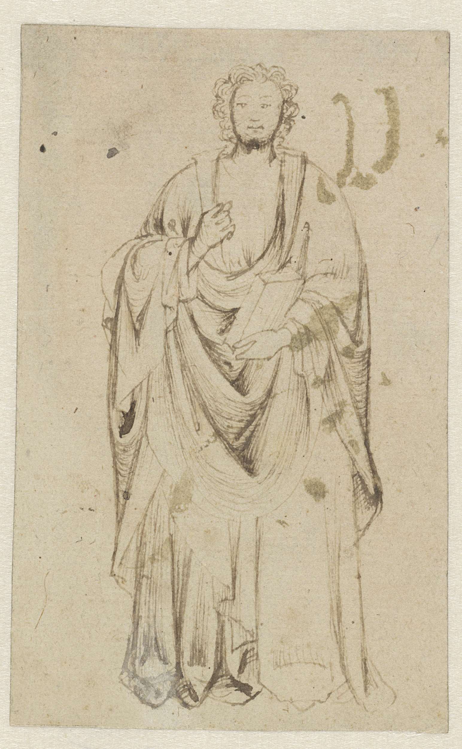 Staande heilige in wijde mantel