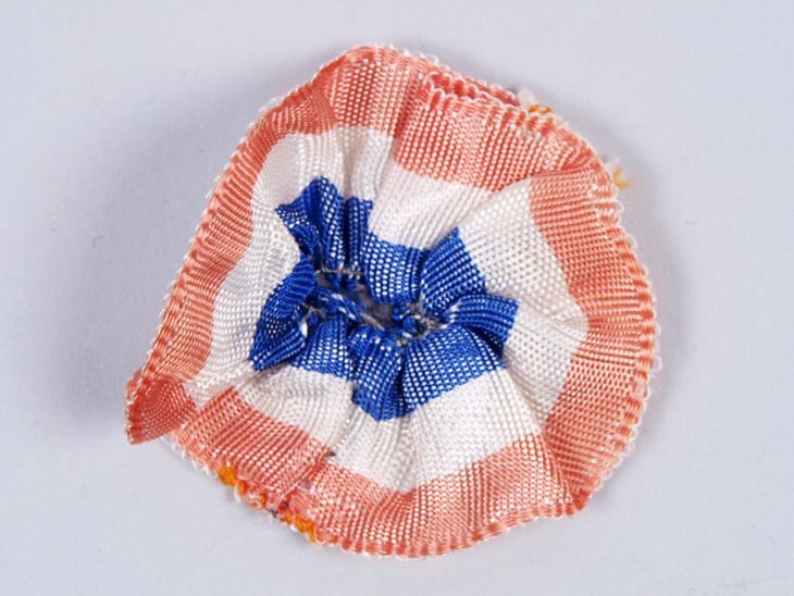 Bevrijdingslinten, een in rood, wit blauw een een me...