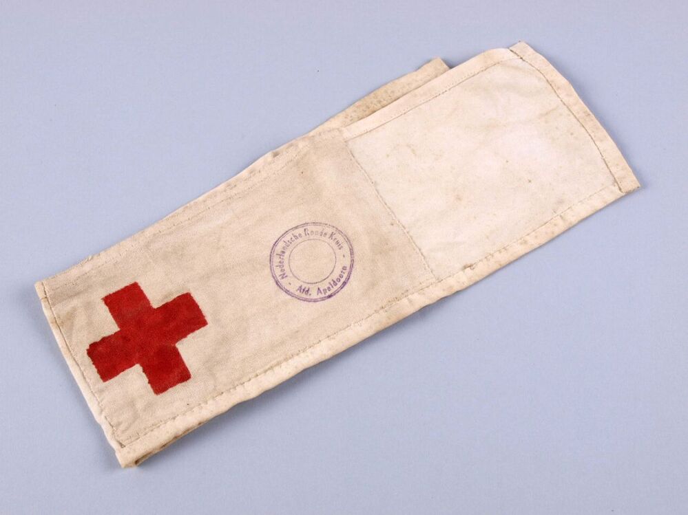 Mouwband, Rood kruis, met stempel: Nederlandssche Ro...