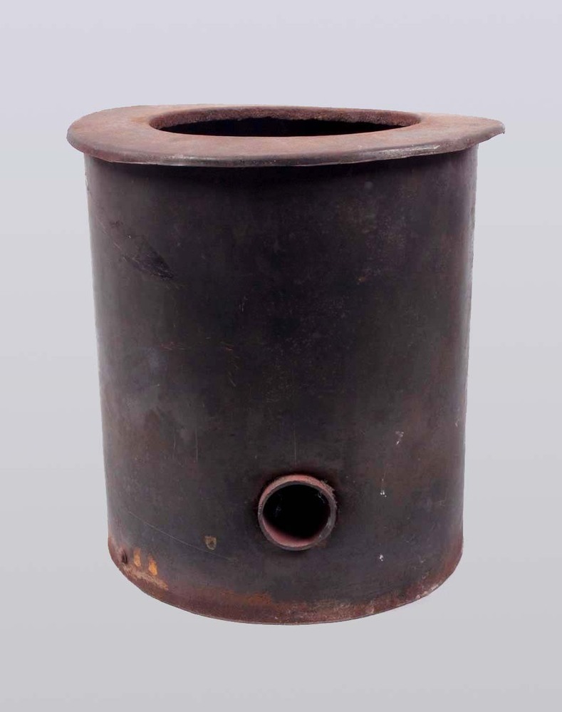 Bakoven in de vorm van een metalen kist met deksel m...