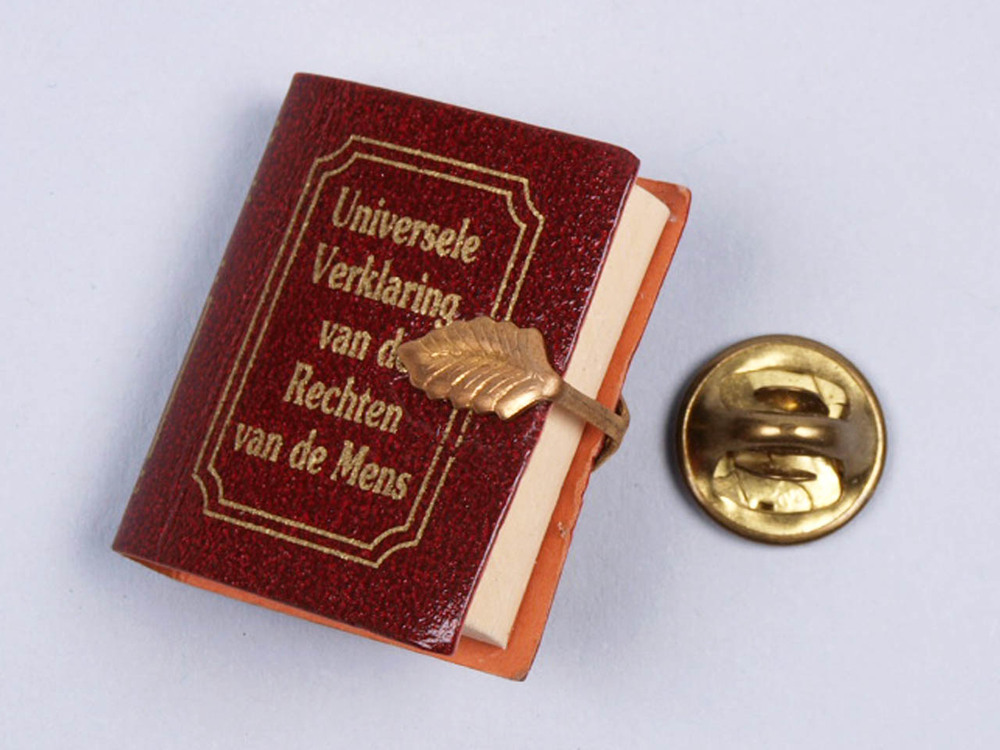 Speldje in de vorm van een rood boekje