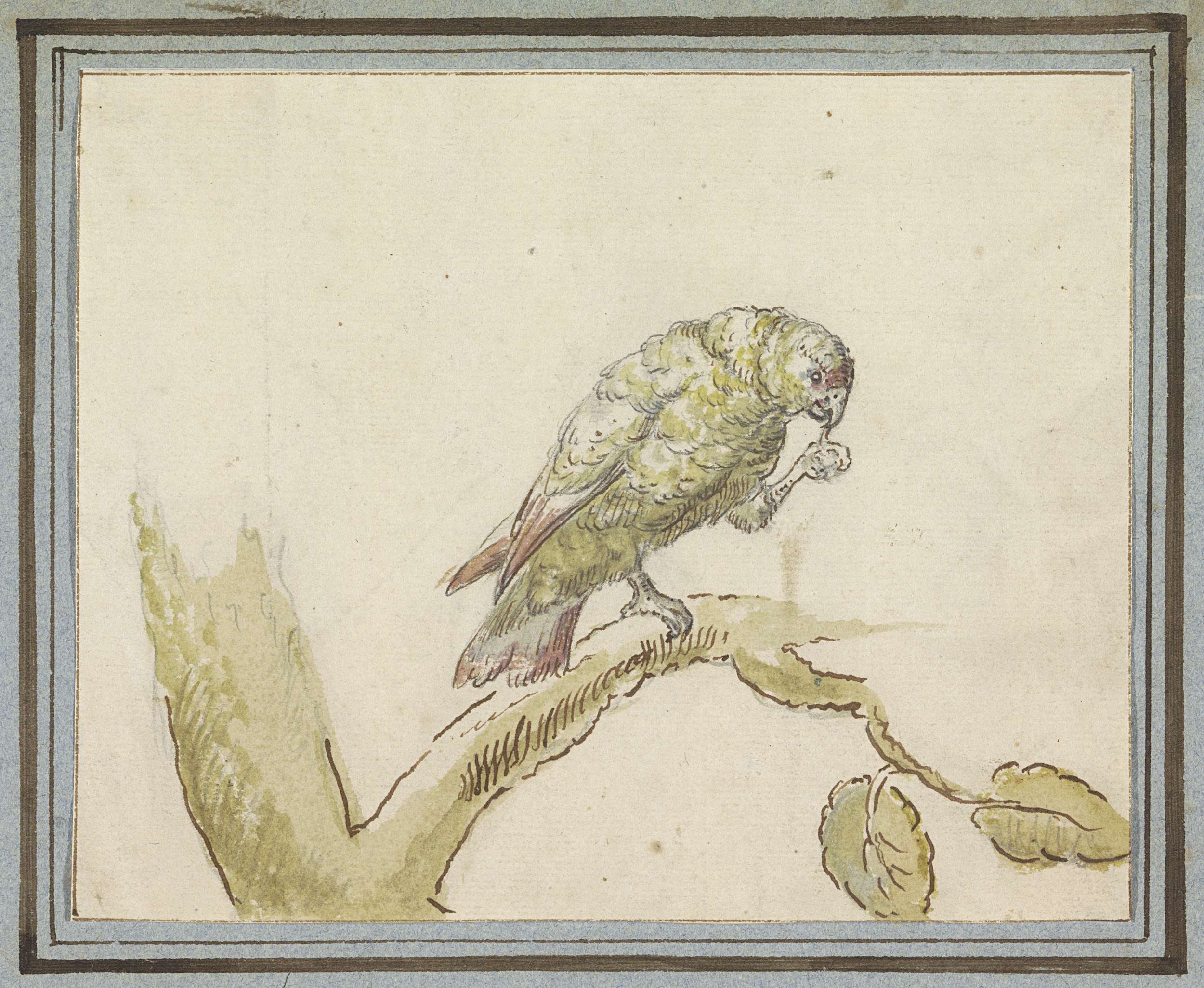 Papegaai op een tak van een boom
