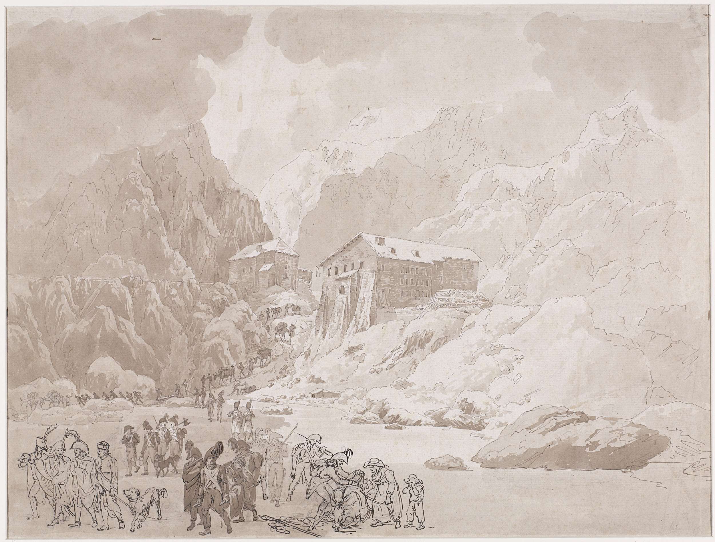 Doortocht van soldaten op de St. Bernard
