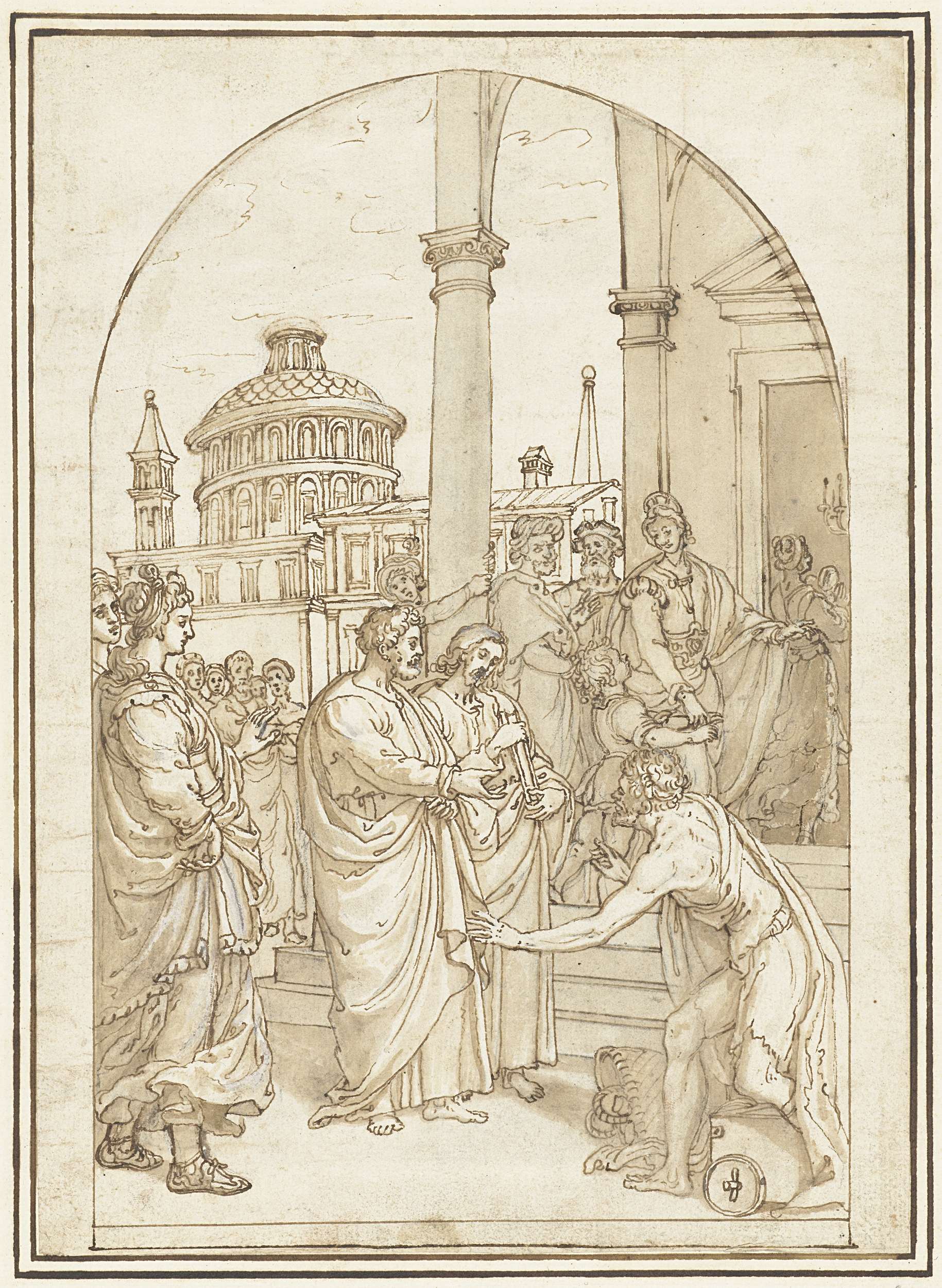 Petrus en Johannes genezen een verlamde man bij de t...