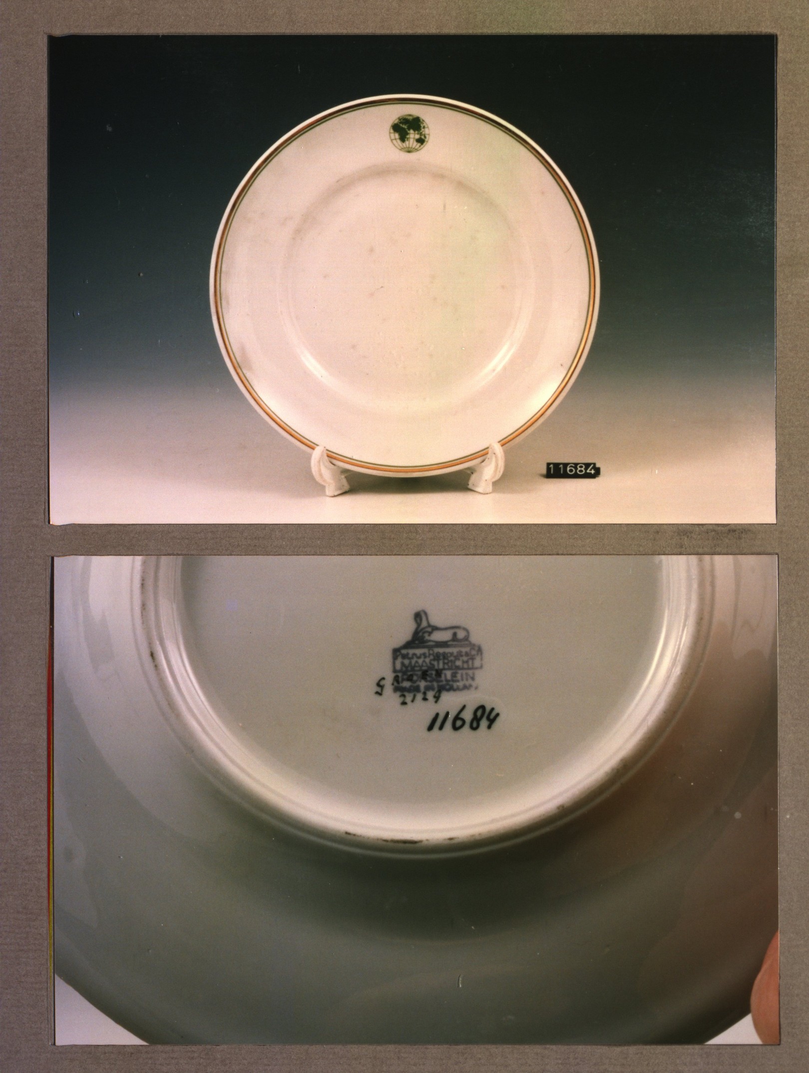 Plat bord, model P met decor Afb. Wereldbol