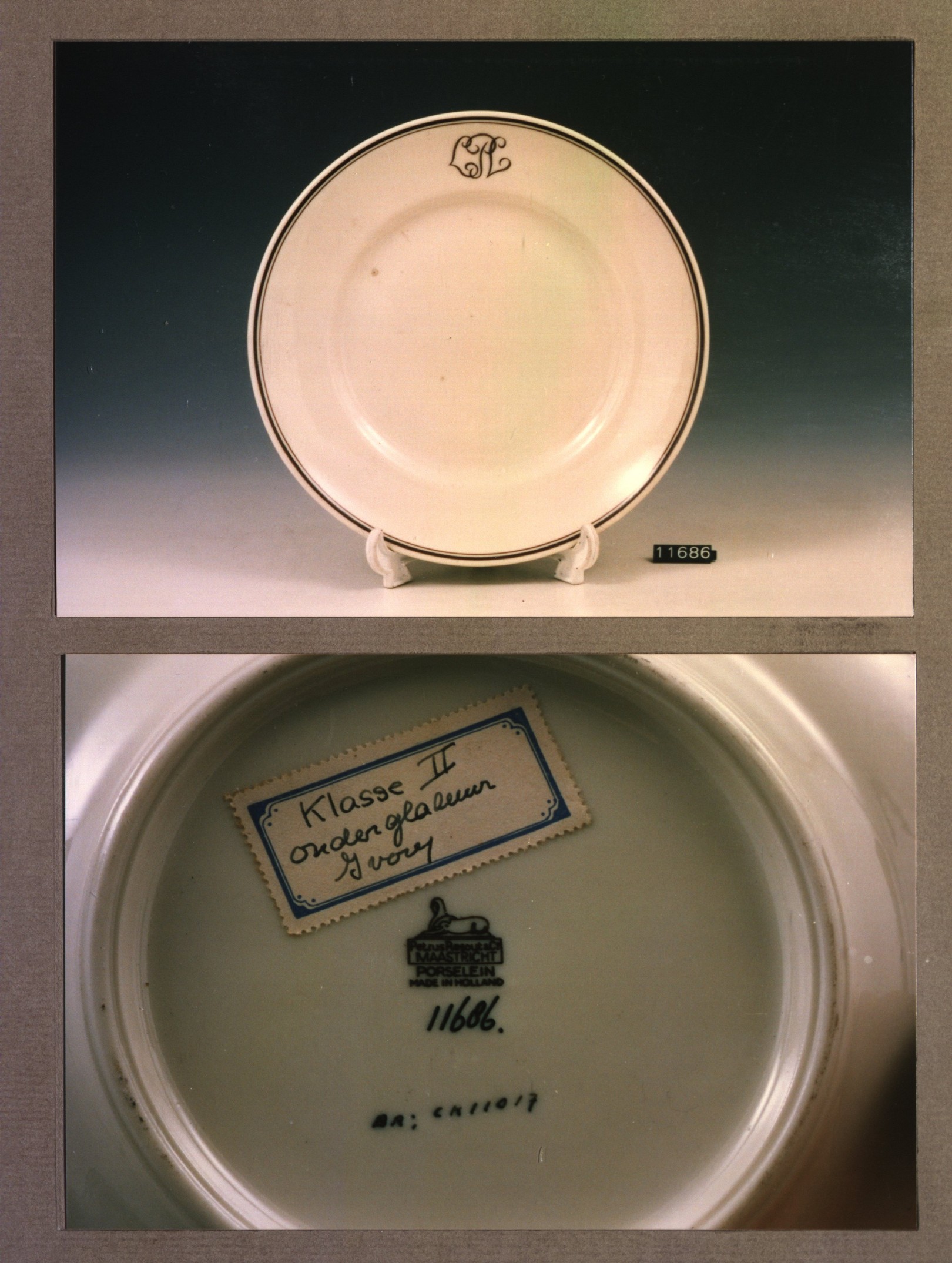 Plat bord, model P met decor C.P.L.