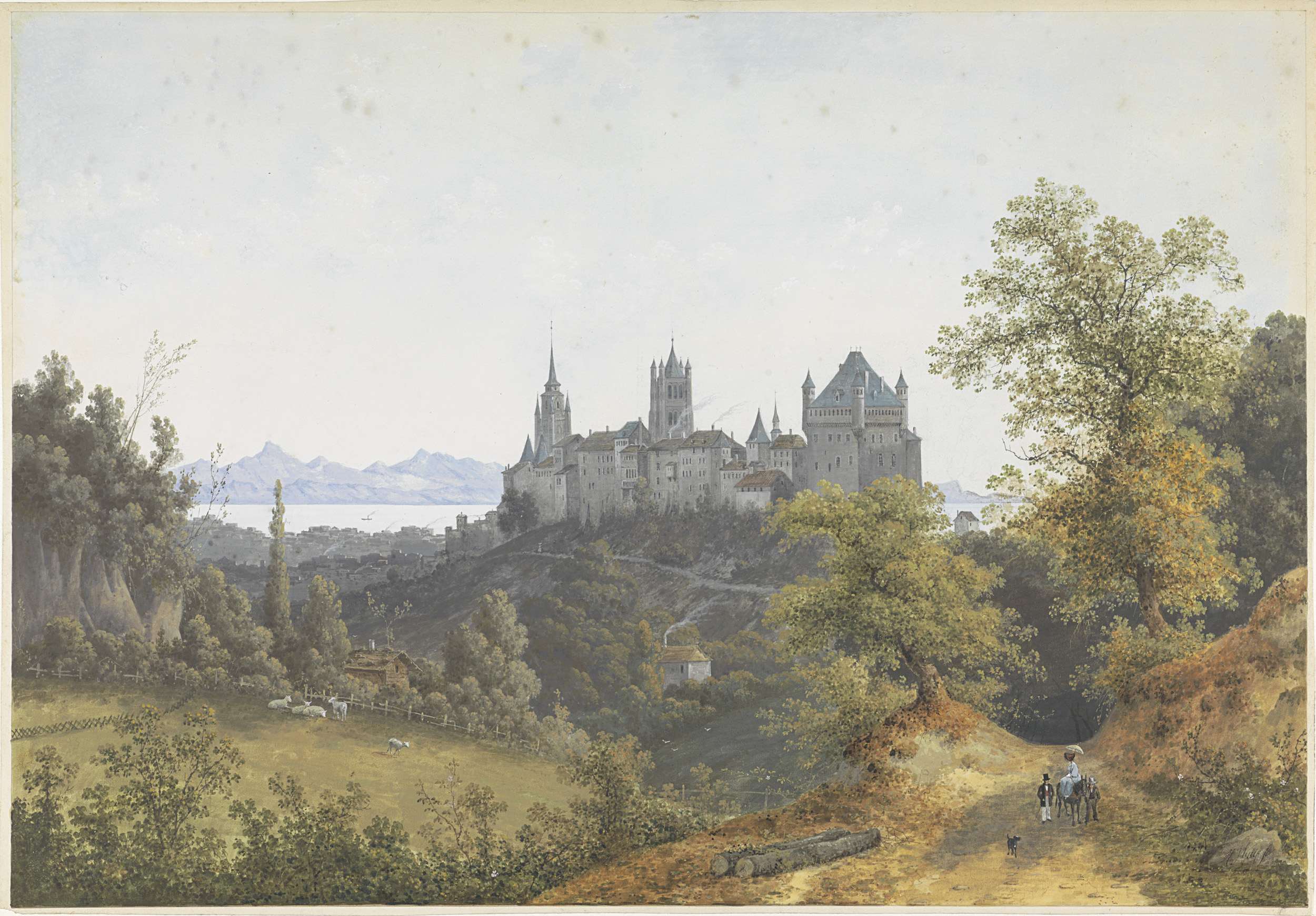 Gezicht op Lausanne, met uitzicht op de burcht en de...