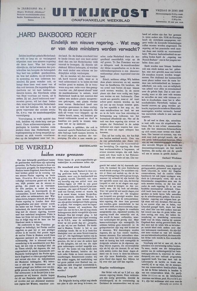 Uitkijkpost, 29 juni 1945.