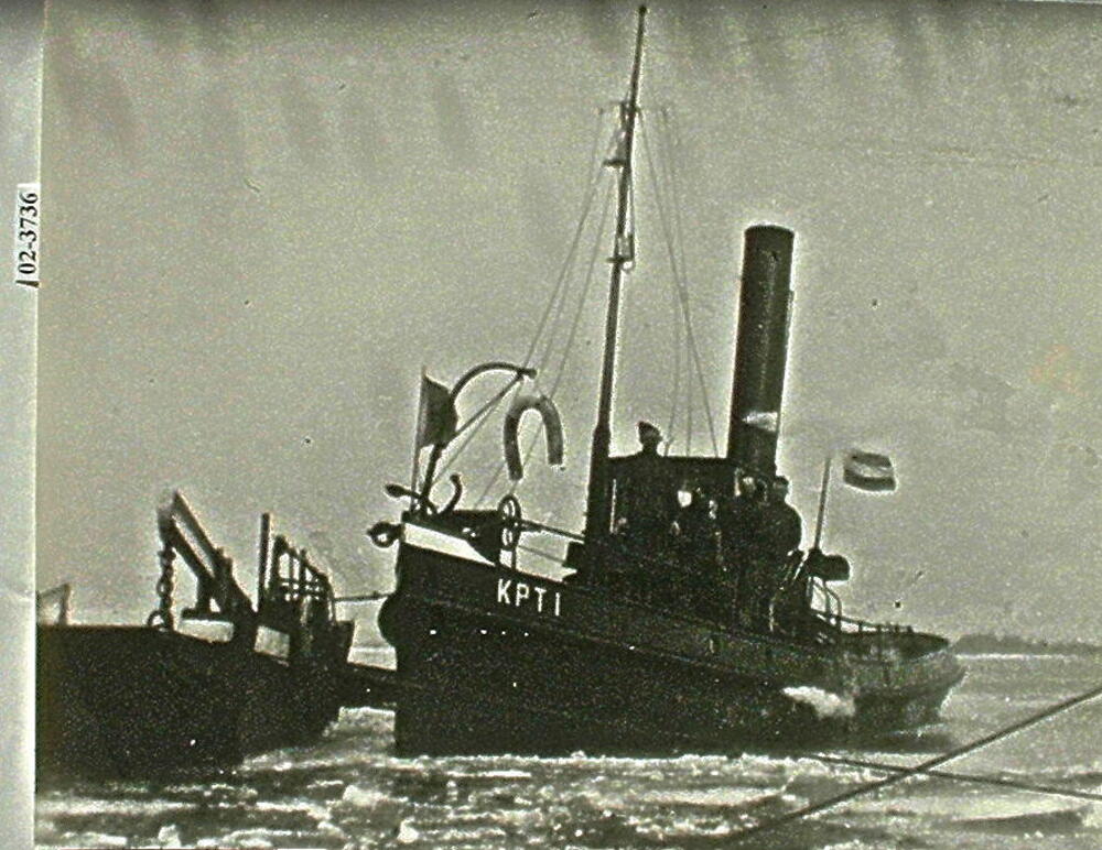 Stoomboot tussen de ijsschotsen aan het Looveer te H...