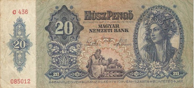 Betaalmiddel, bankbiljet, waarde 20 Husz Pengo