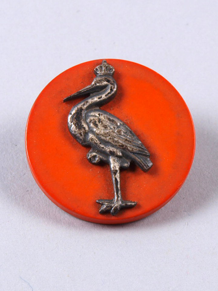 Speld, Ooievaar, op oranje veld