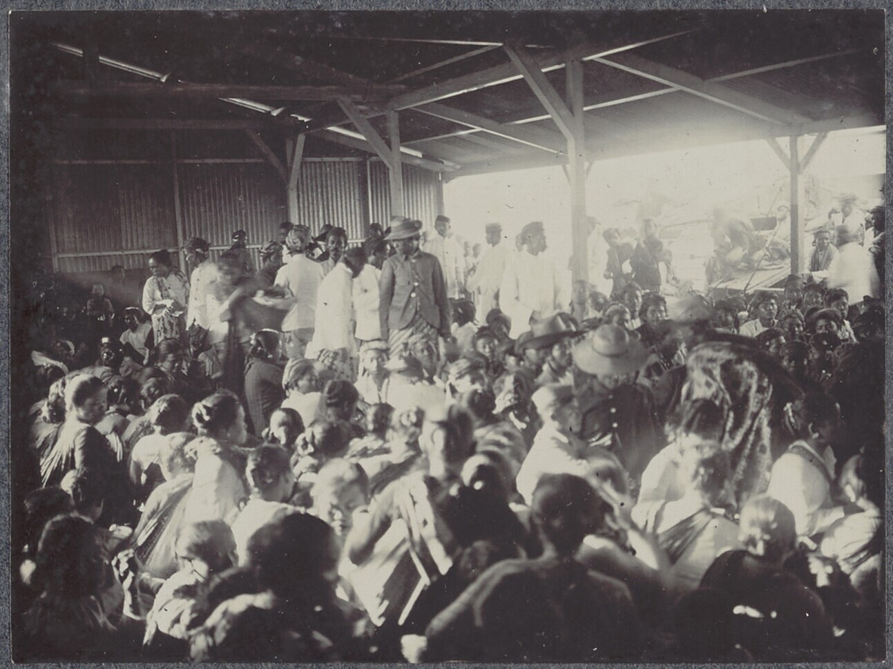 Contract labourers waiting at the 'Boom' to embark t...