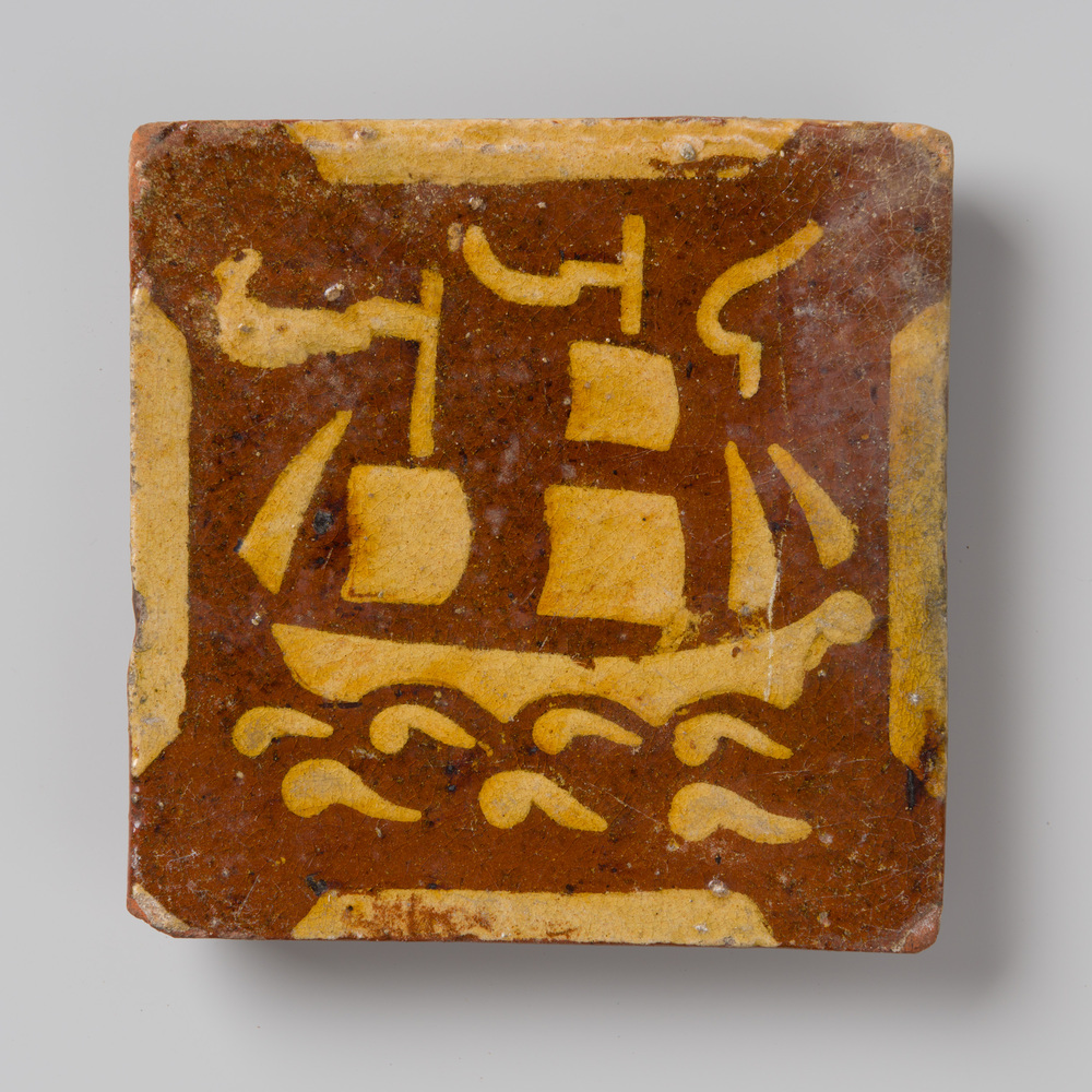 Vloertegel van keramiek, engobe, voorstellende schee...