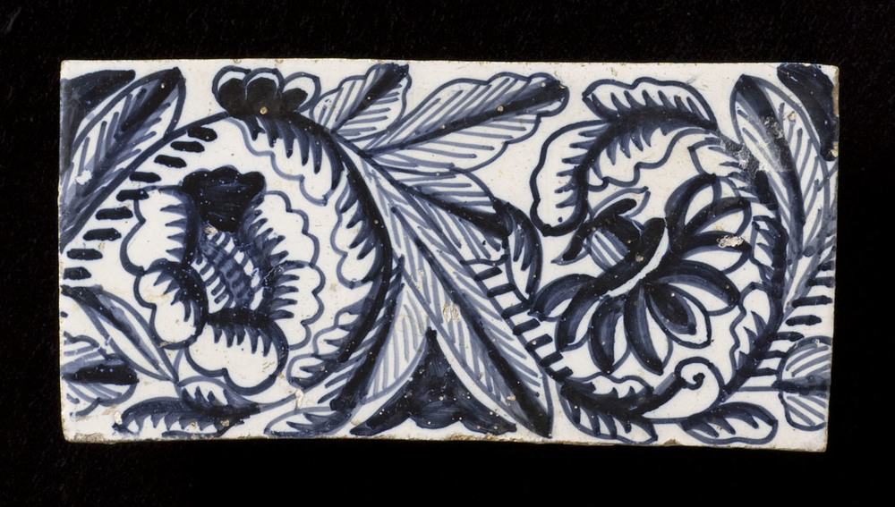 Randtegel in tinglazuur, voorstellende bloemhalfjes,...