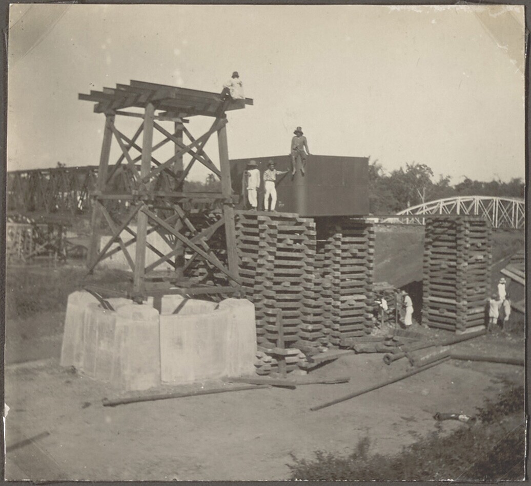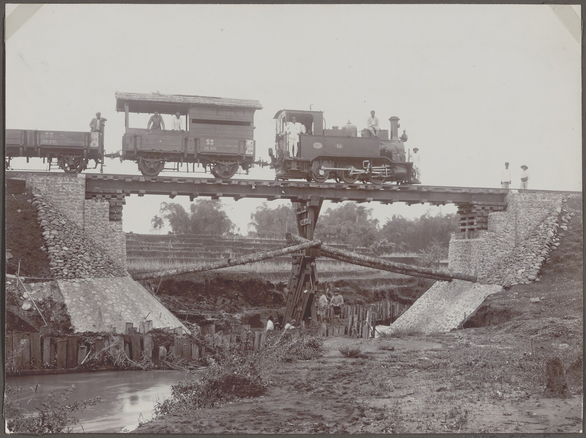 Spoorbrug over de Tji Taroem, onderdeel van de spoor...