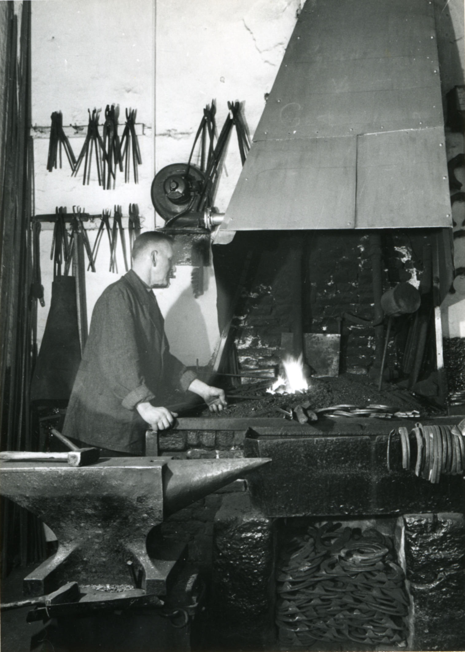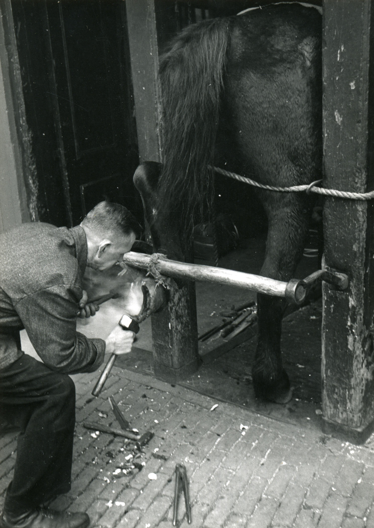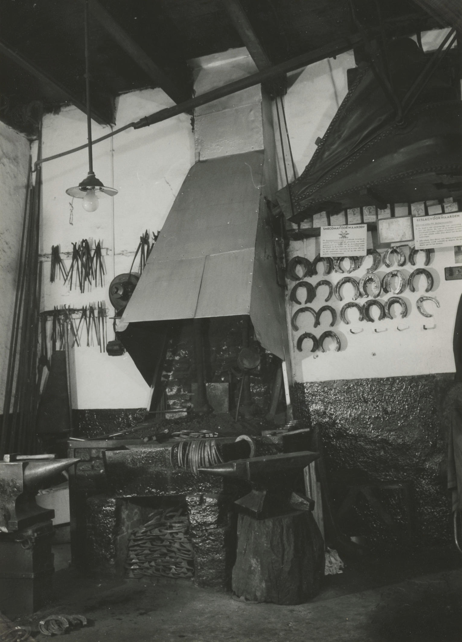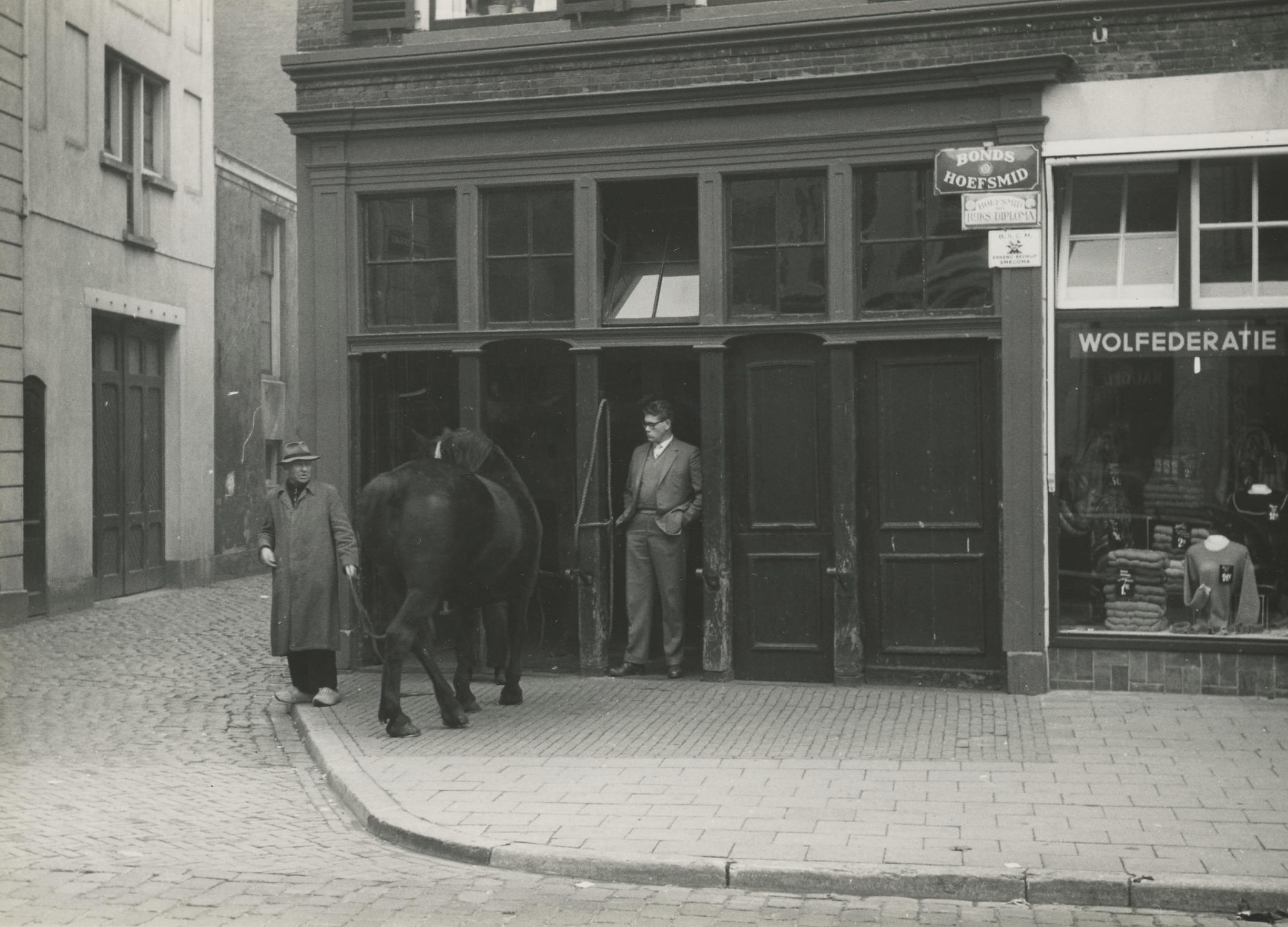 Hoefsmederij Poppe, Zwolle, 1960 (zwart-wit foto)