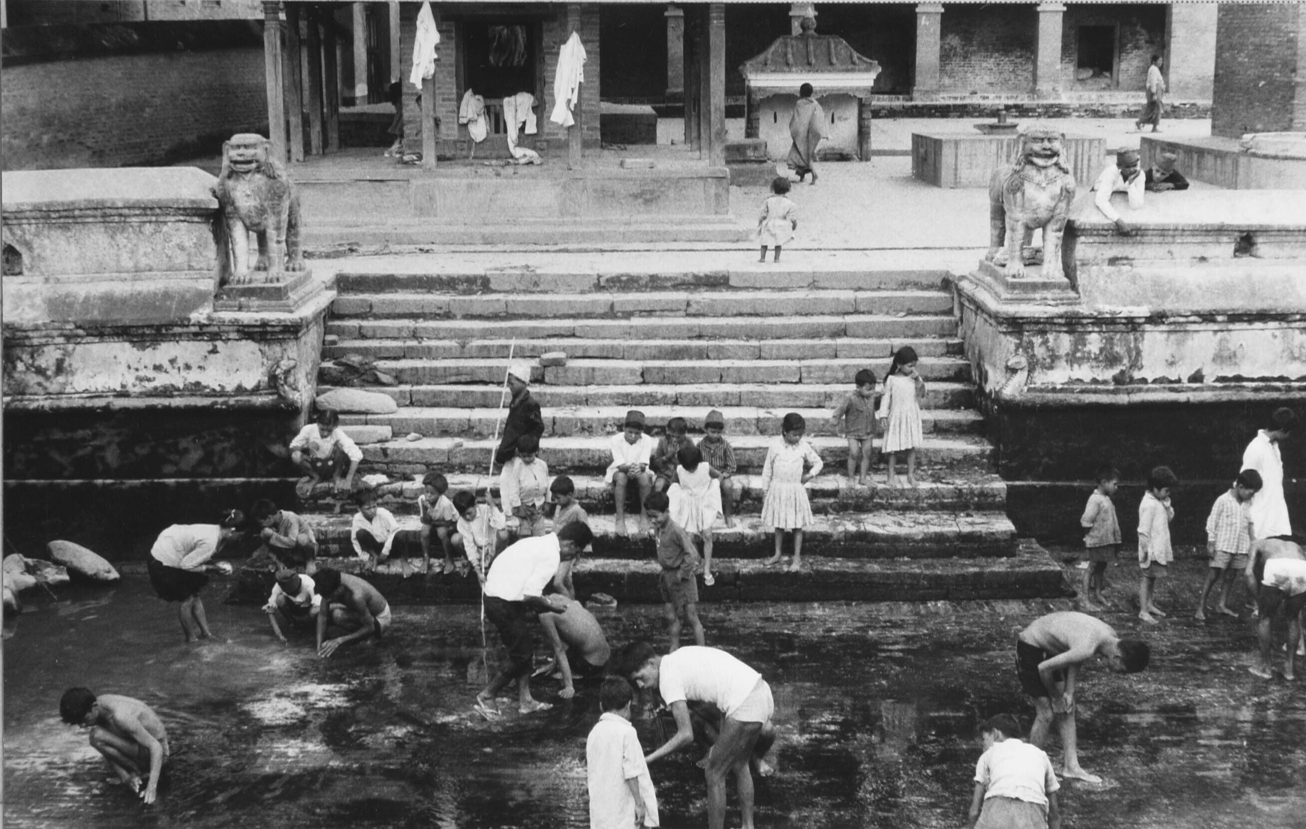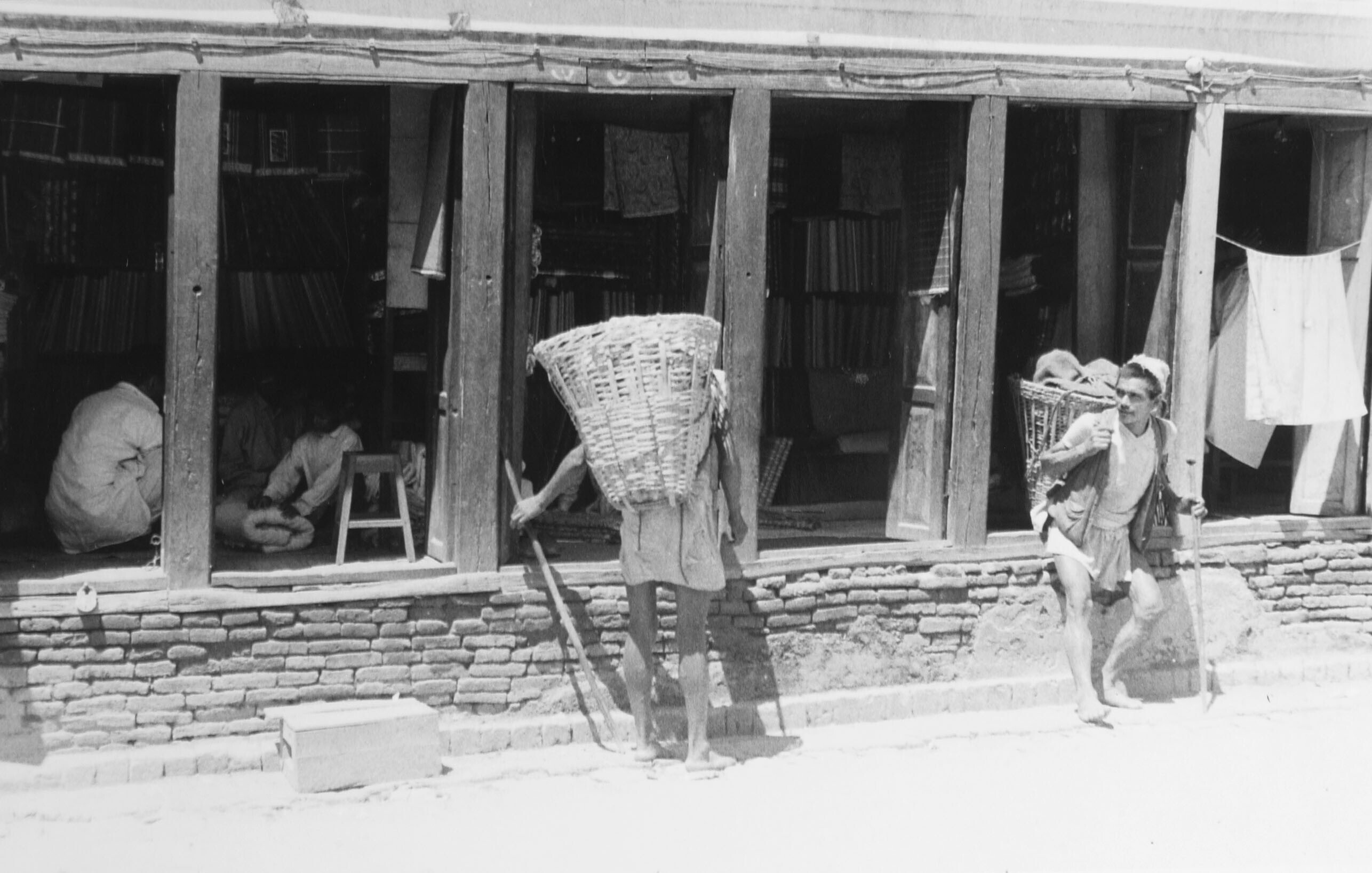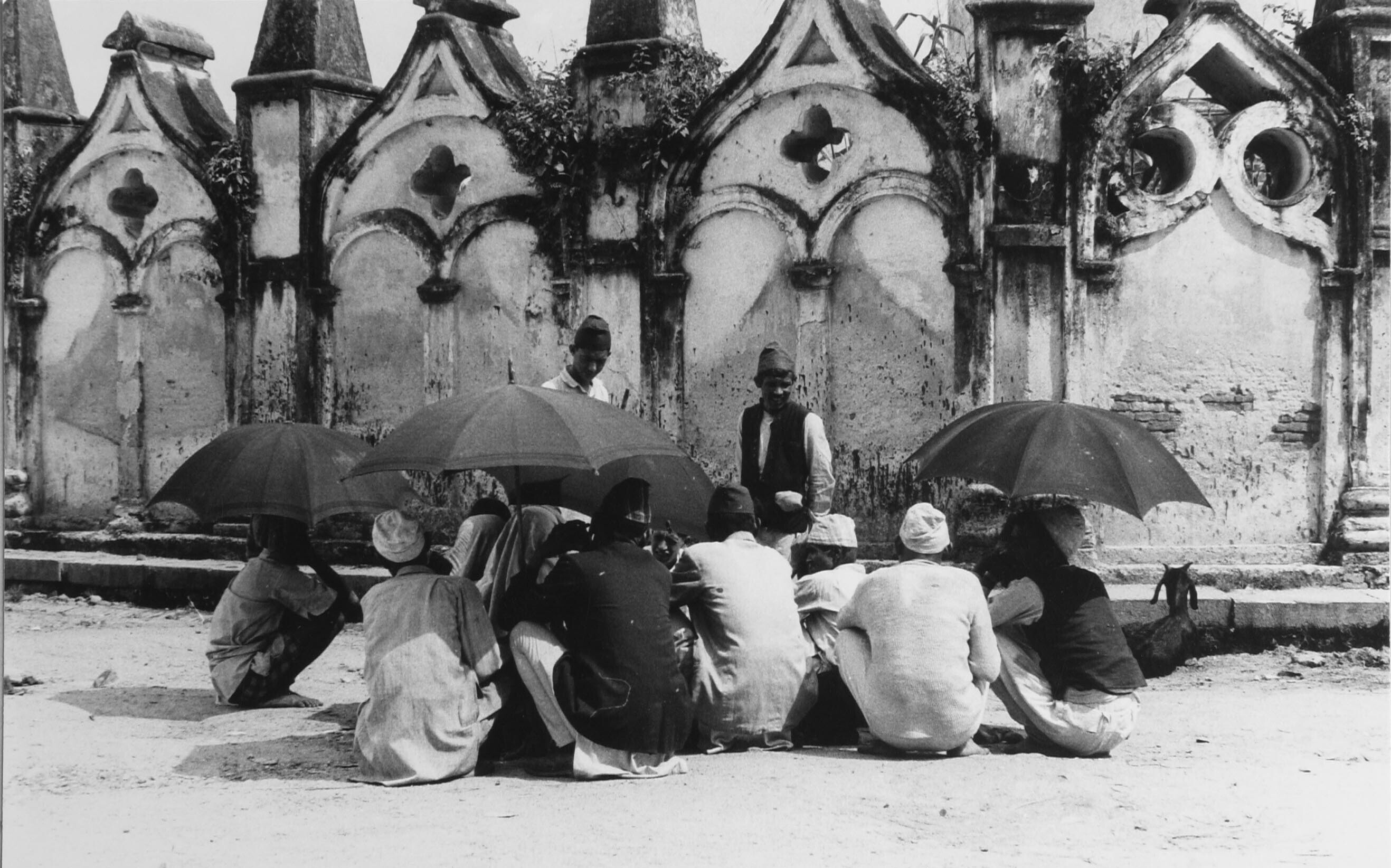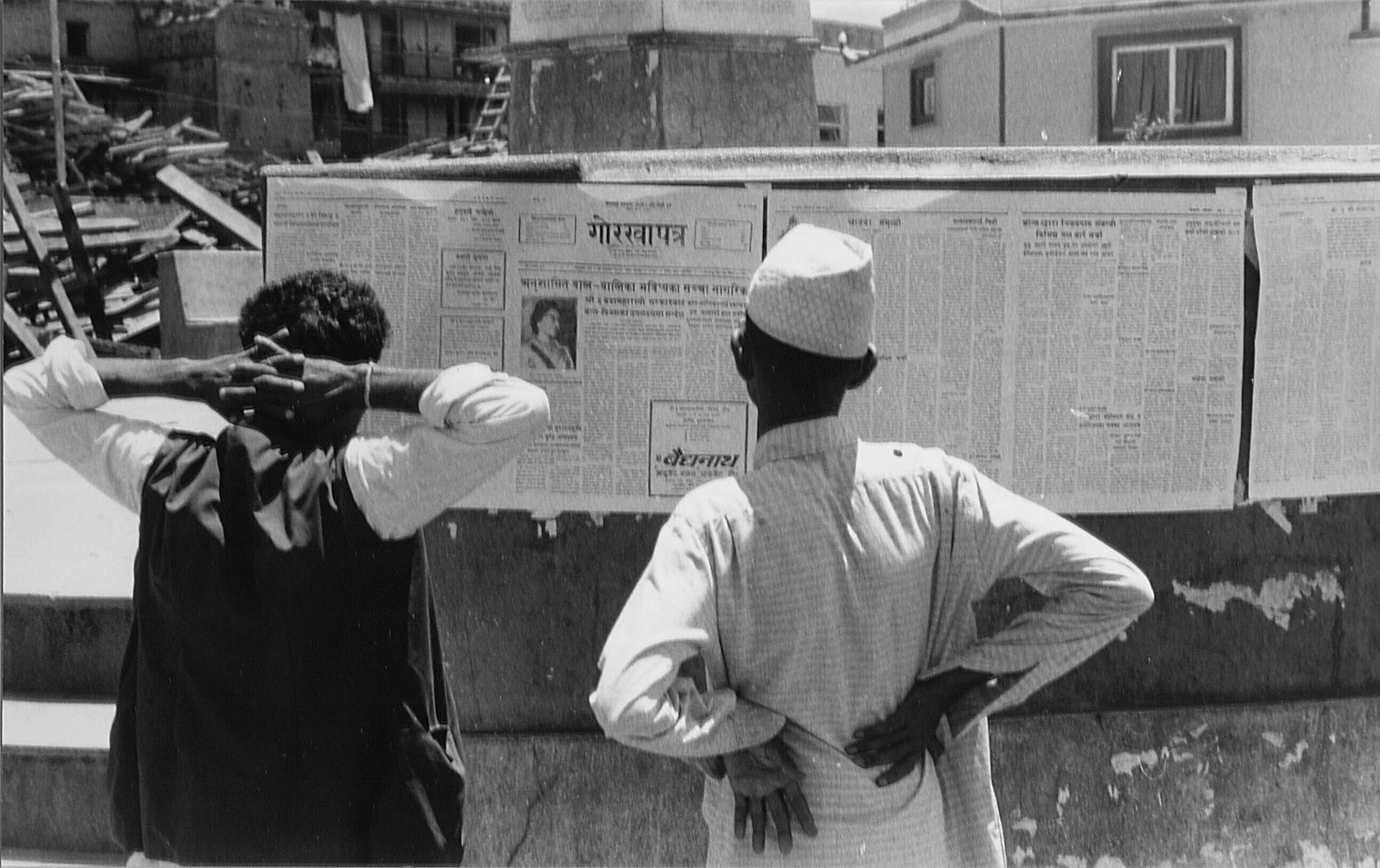 Groepje mensen bij de muur rond de Bhimsen Toren