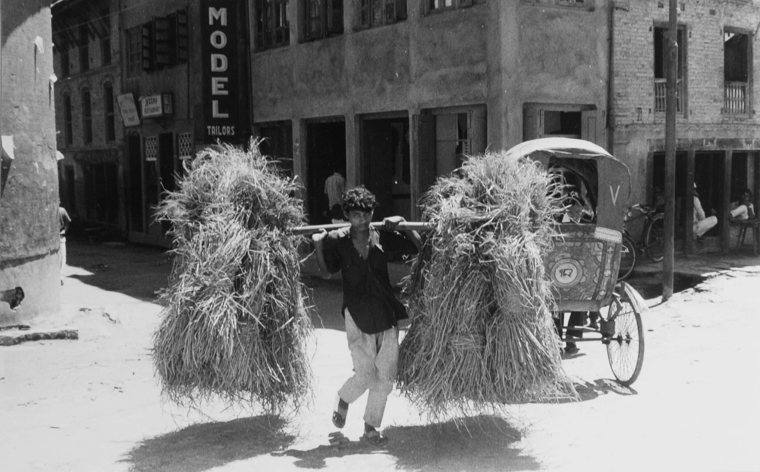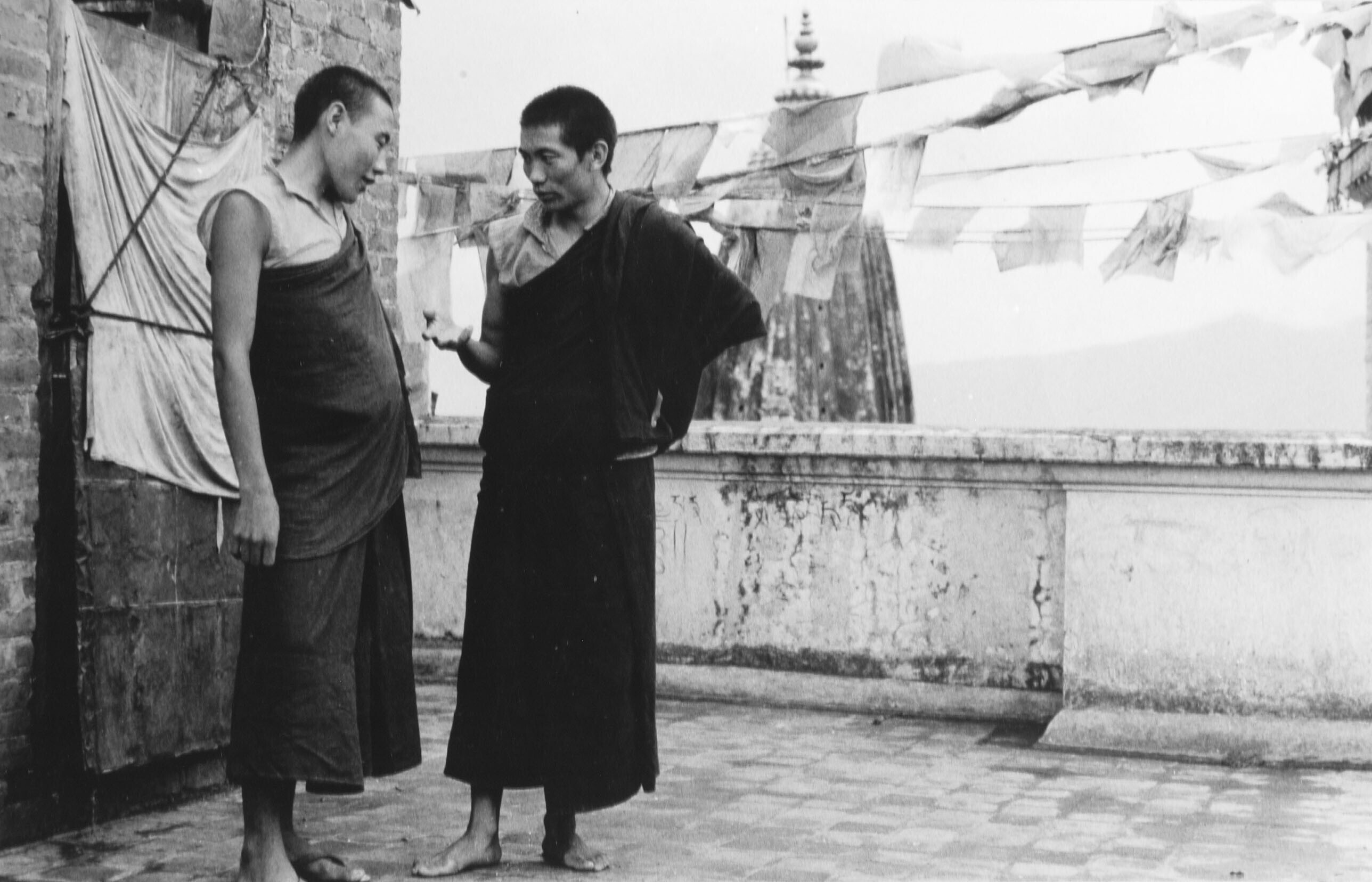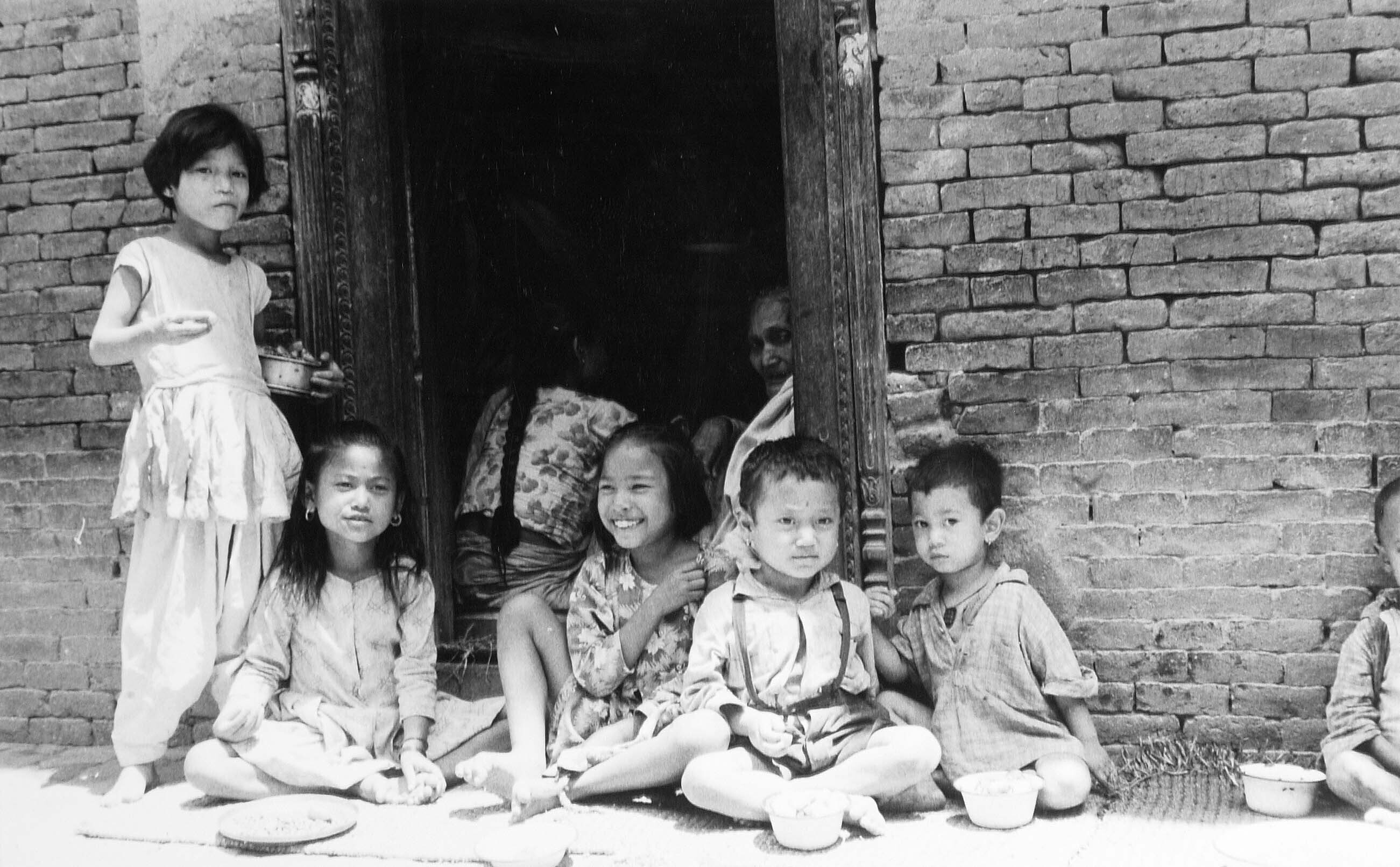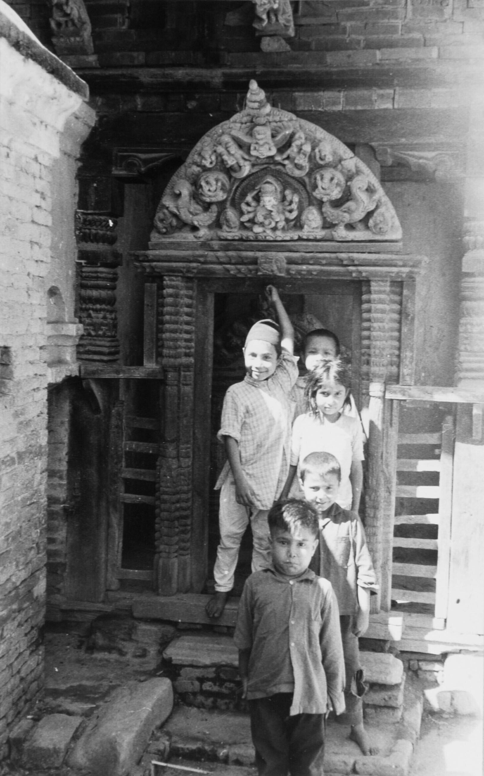 Groepje mensen bij de muur rond de Bhimsen Toren