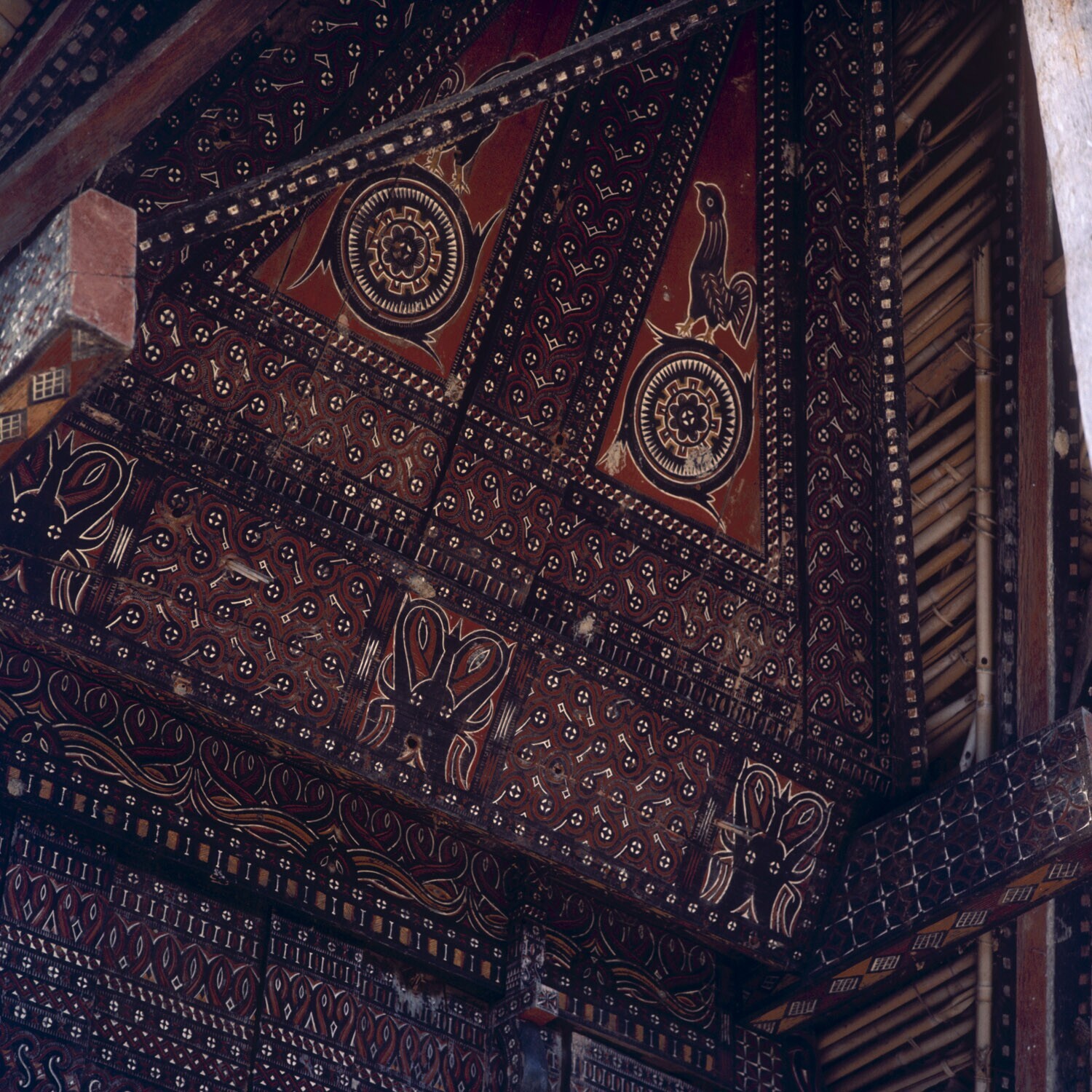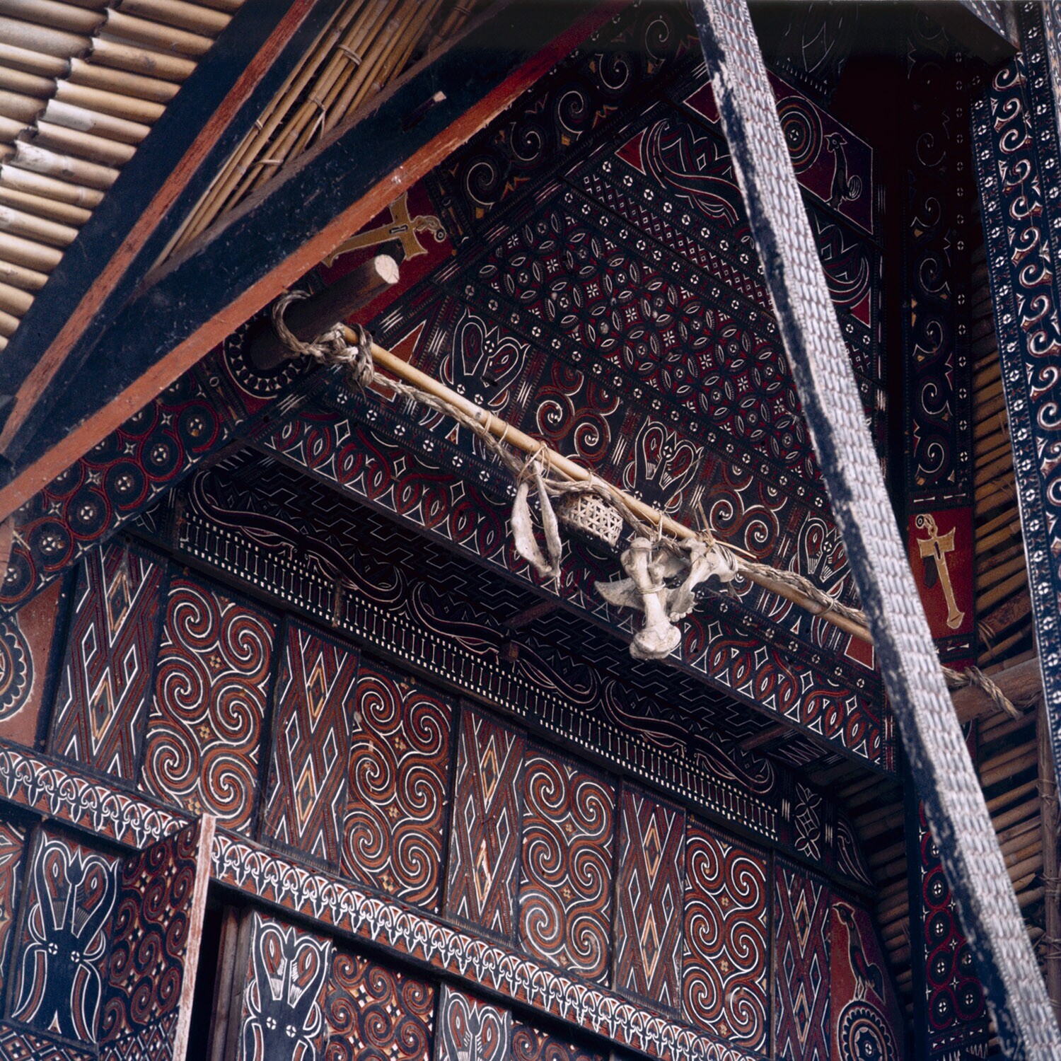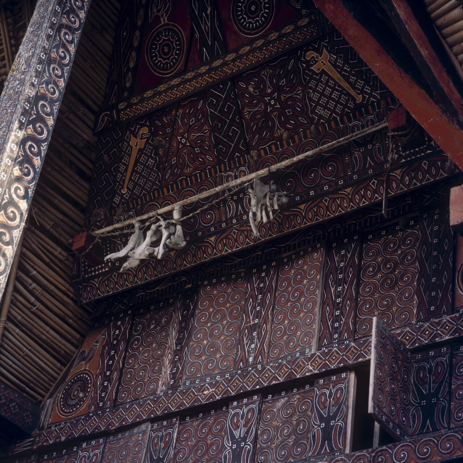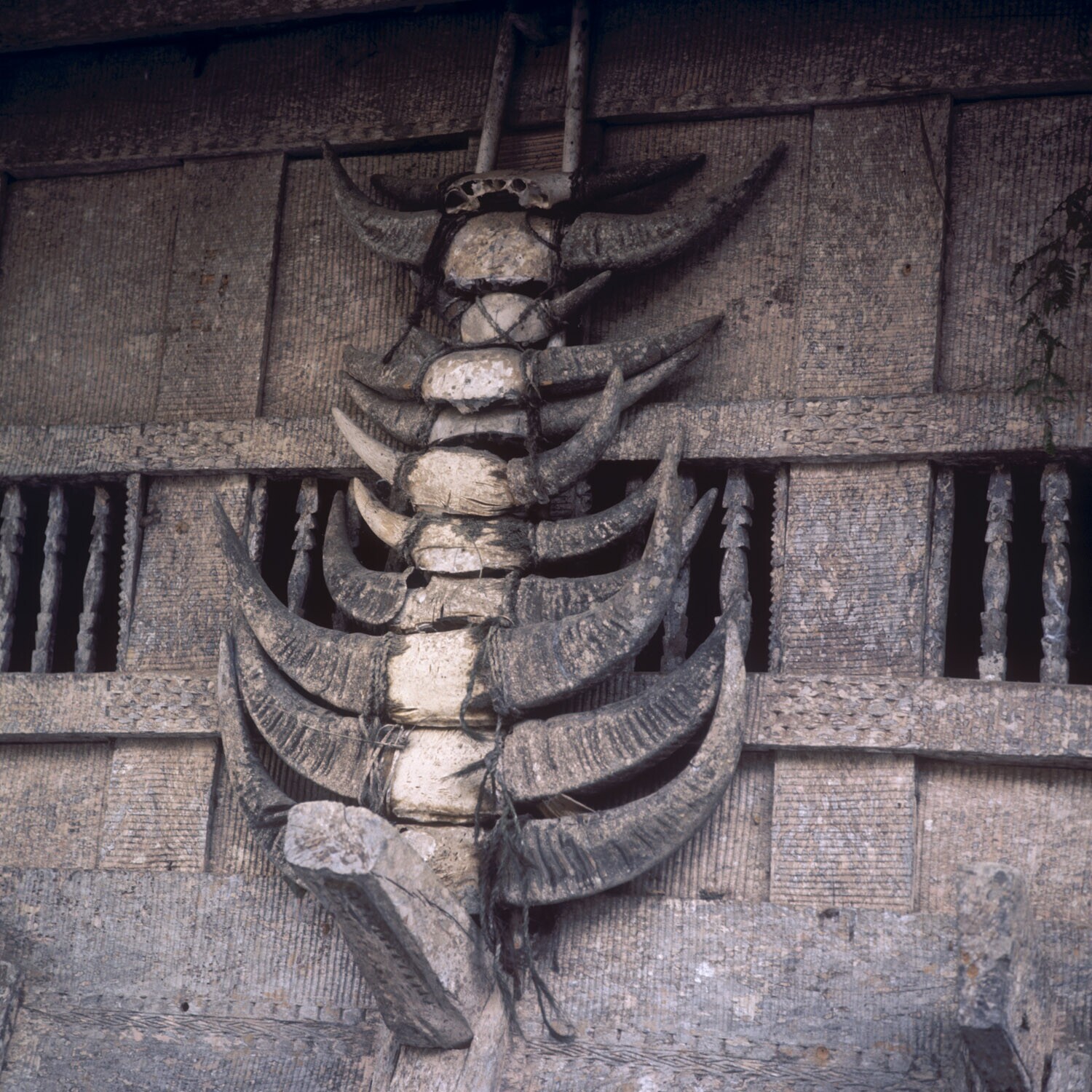 Voorgevels van huizen in dorp Pilawa, Tana Toradja, ...