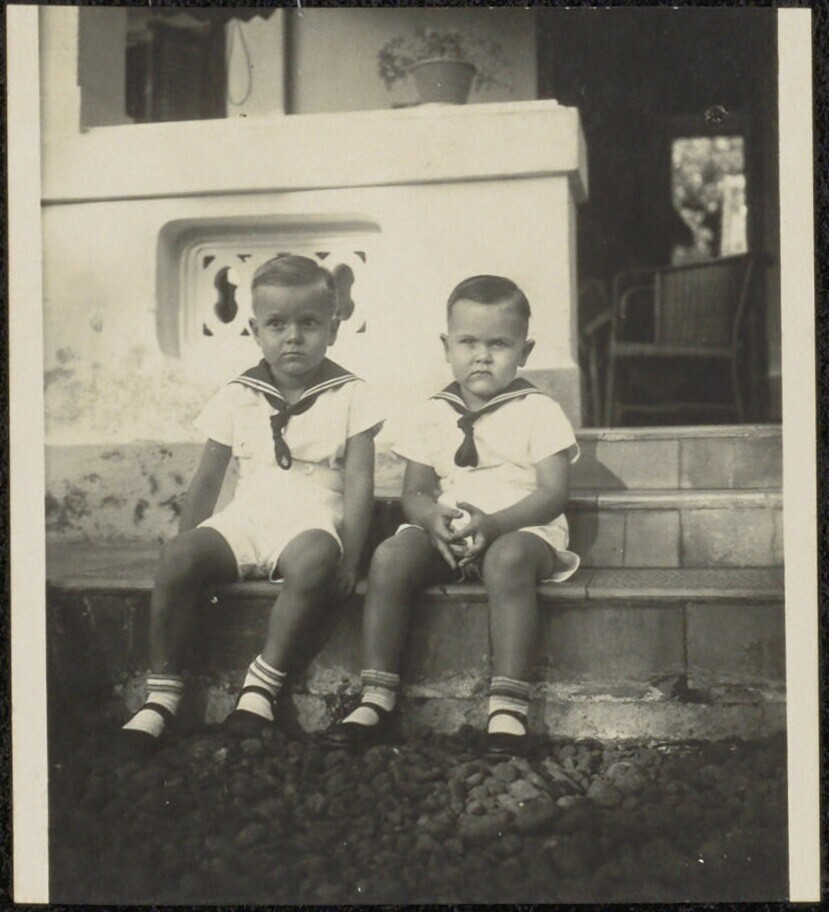 Portret van twee jongens in matrozenpakjes