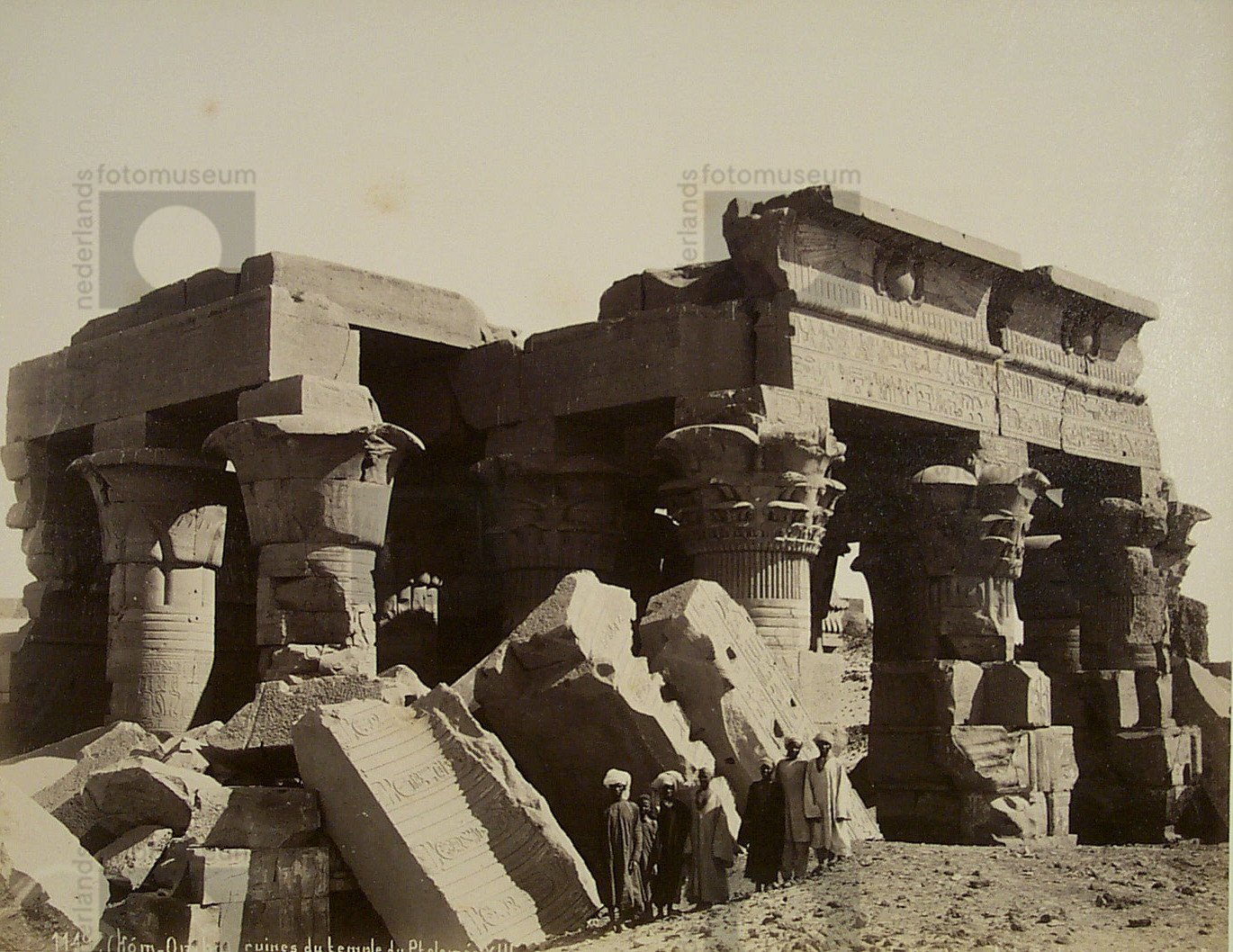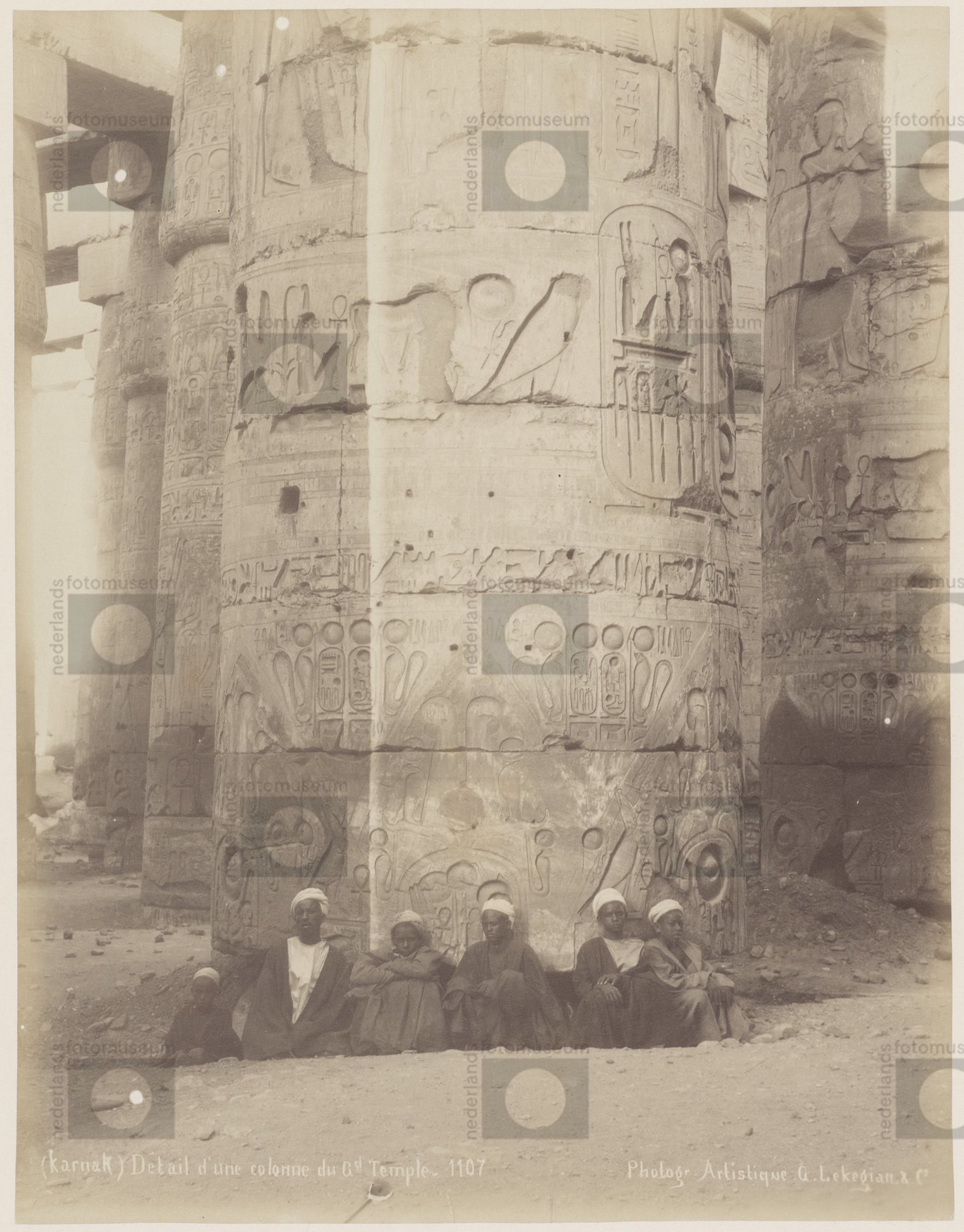 Mannen zittend aan de voet van een zuil van de Amon-...