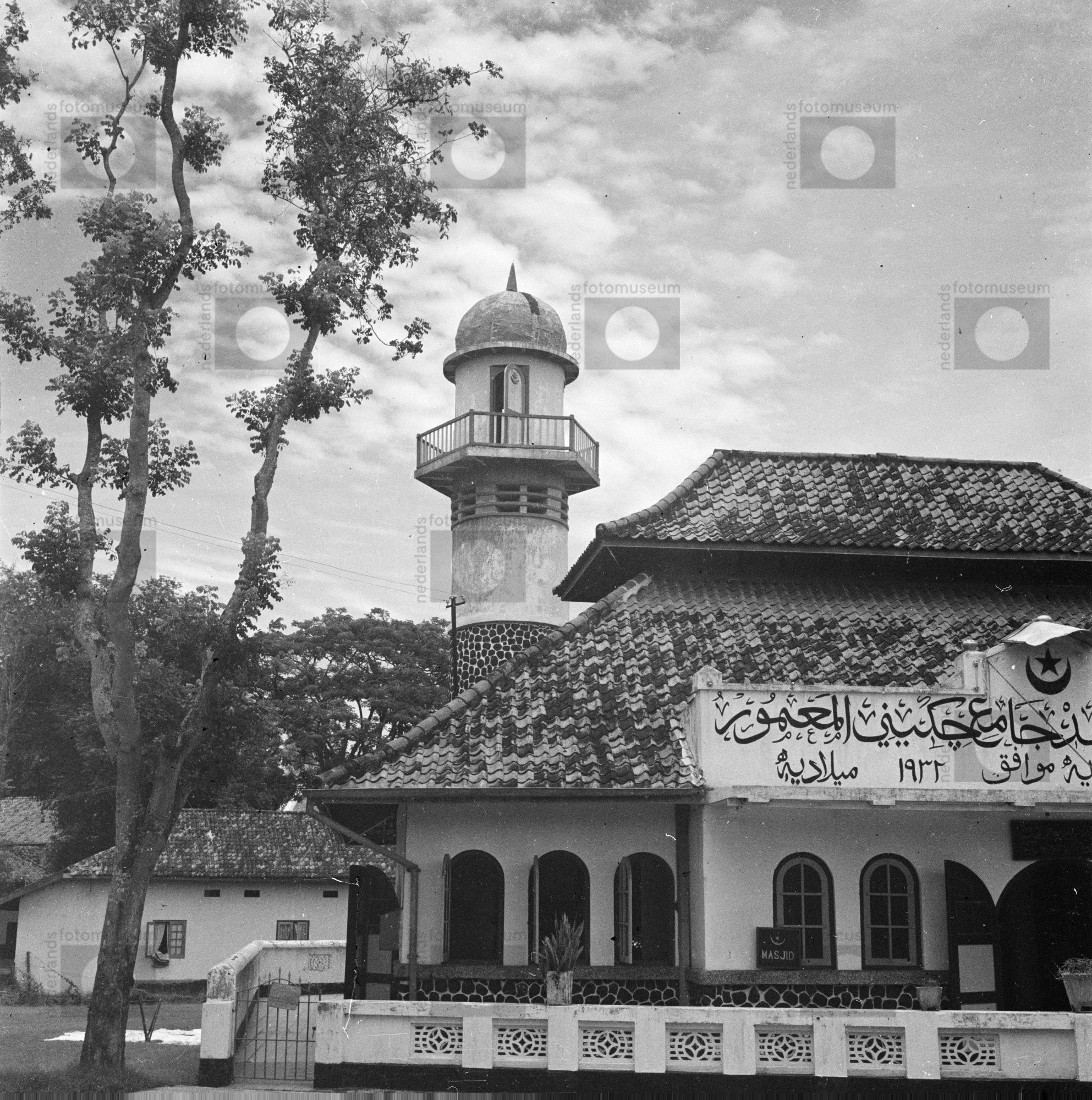 Frontaal a-symmetrisch aanzicht van een moskee, Indo...