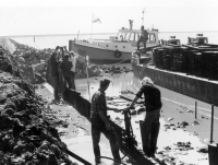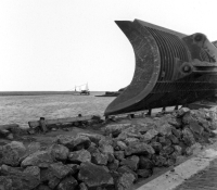 Afsluiting van de Lauwerszee, bouw caissons. Van enk...