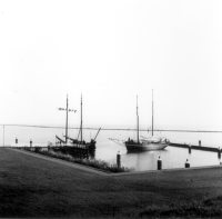 Afsluiting van de Lauwerszee. Bouw van caissons. Eén...