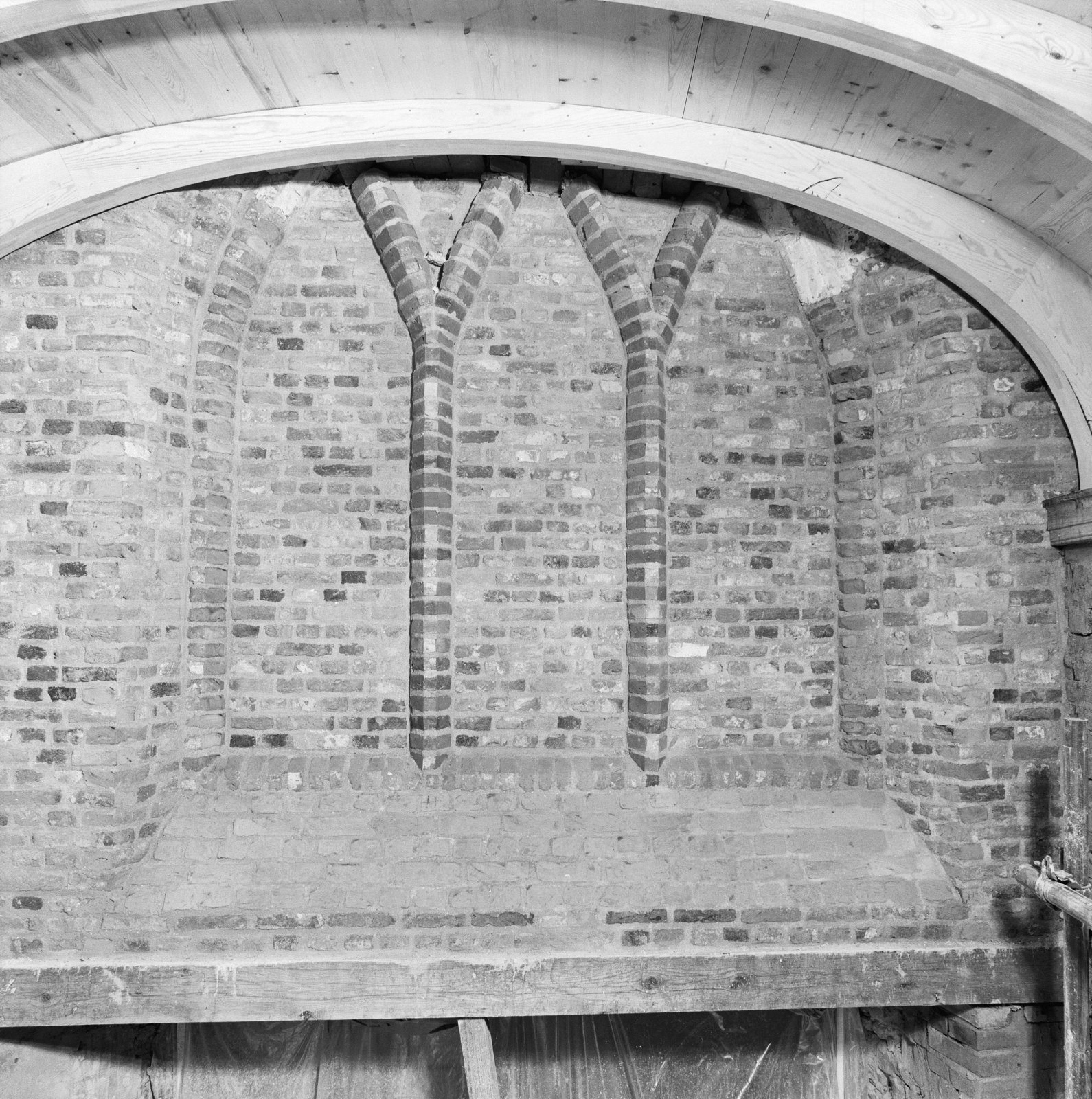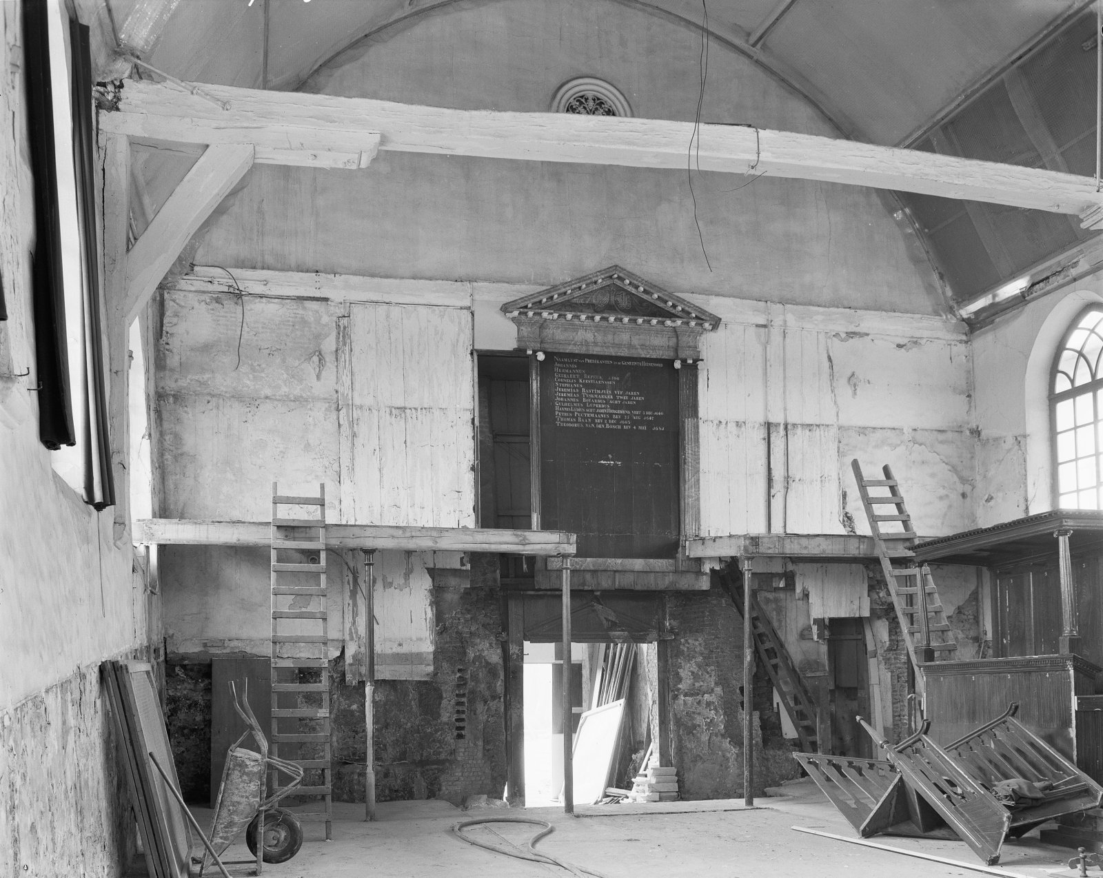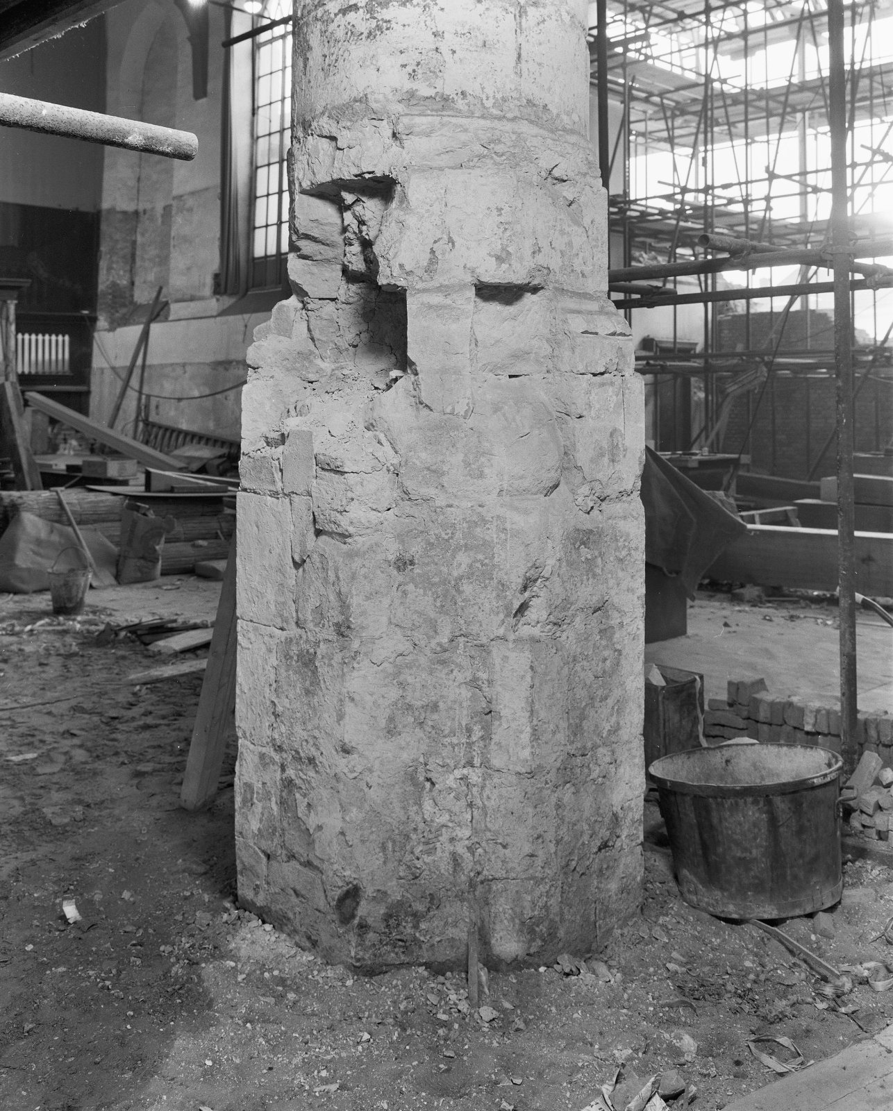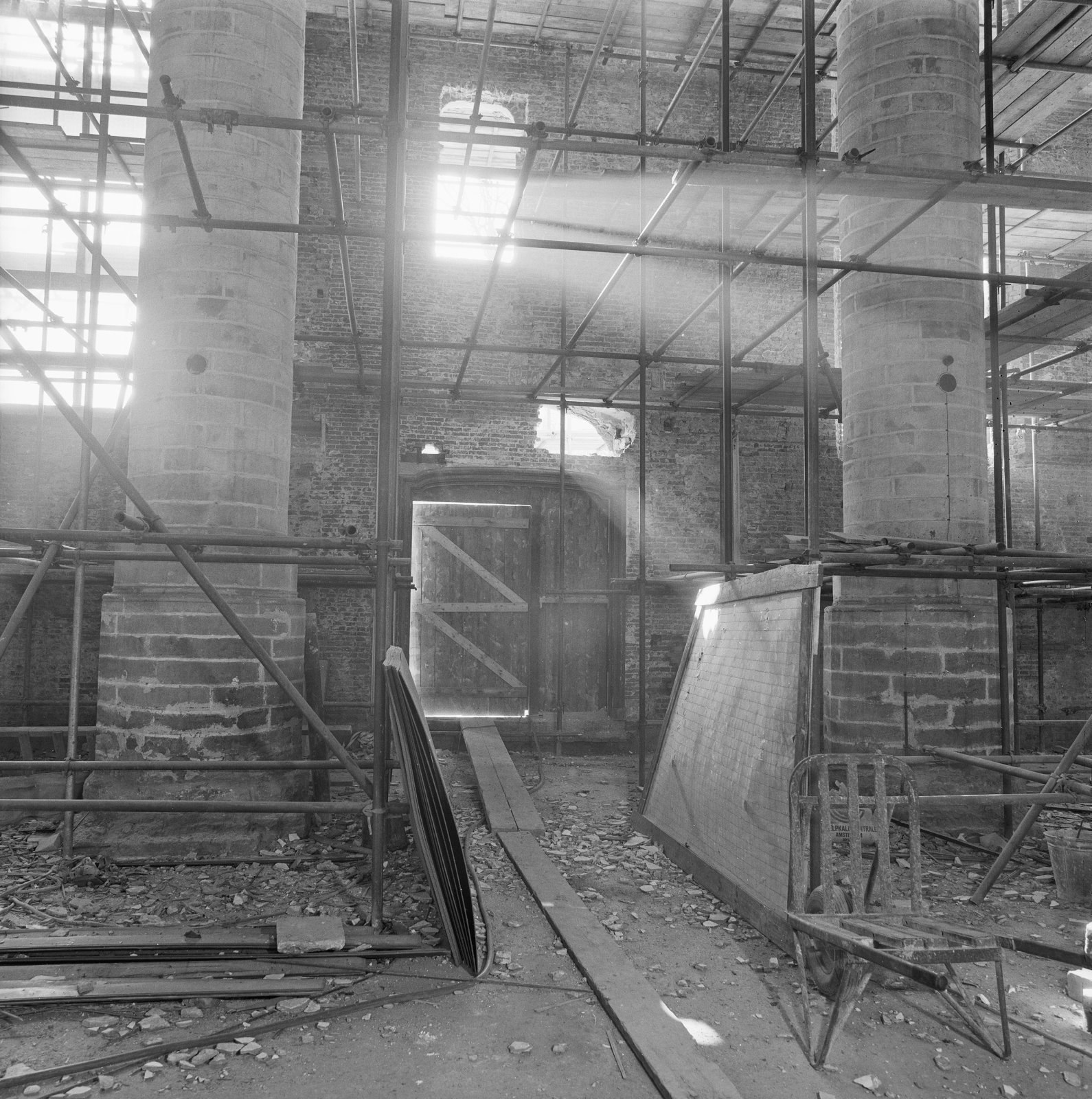 Interieur Hervormde kerk in de steigers: zuid toegan...