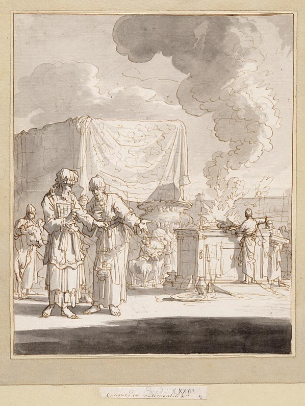 Aäron als hogepriester spreekt met een priester voor...