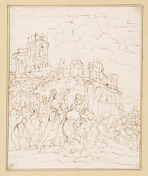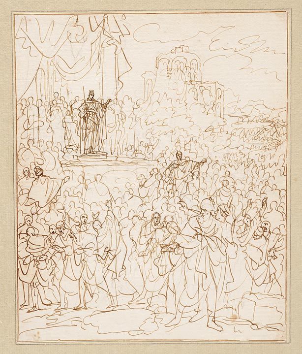 Jozua ontvangt de voor hem knielende Gibeonieten
