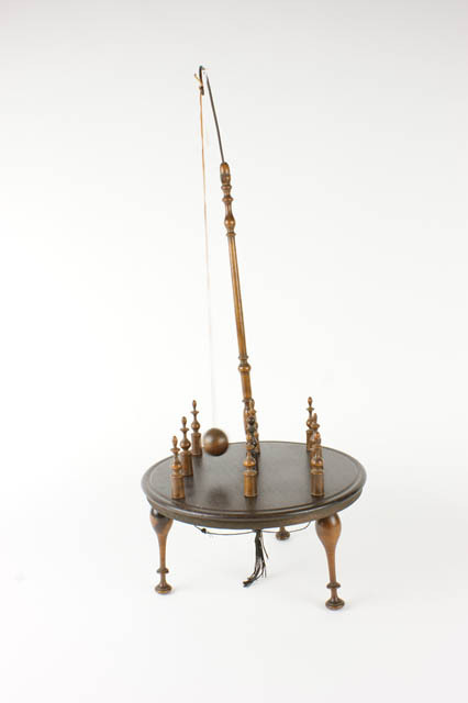 Kegelspel voor op tafel met 9 kleine kegels op ronde...