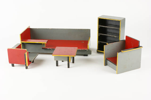 Ameublement, 5 delig voor pop, kast, bank, 2 stoelen...
