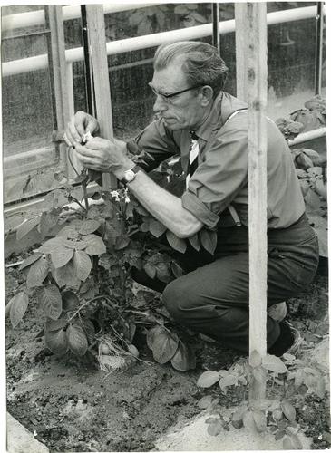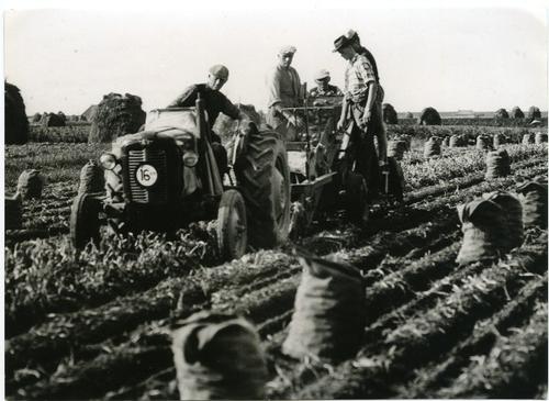 Foto in zwart-wit van voorlichting over aardappeltee...