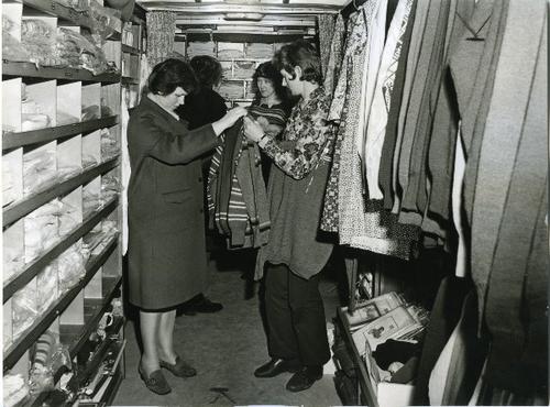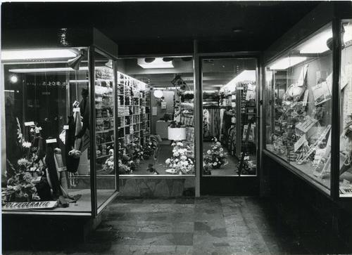 Foto in zwart-wit van de winkel van de Nederlandse W...