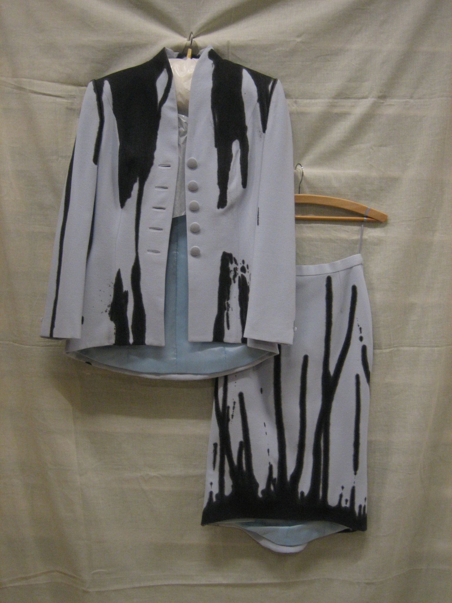 Ensemble van lichtblauwe wollen crêpe overgoten met ...