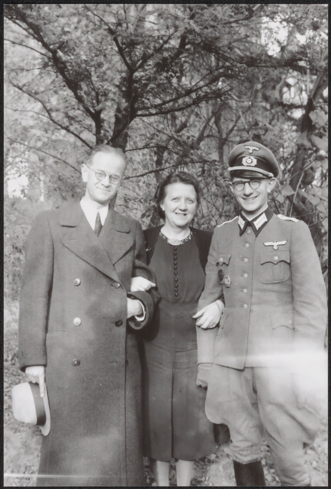 Duitse militair en twee burgers ( ouders?) poseren v...