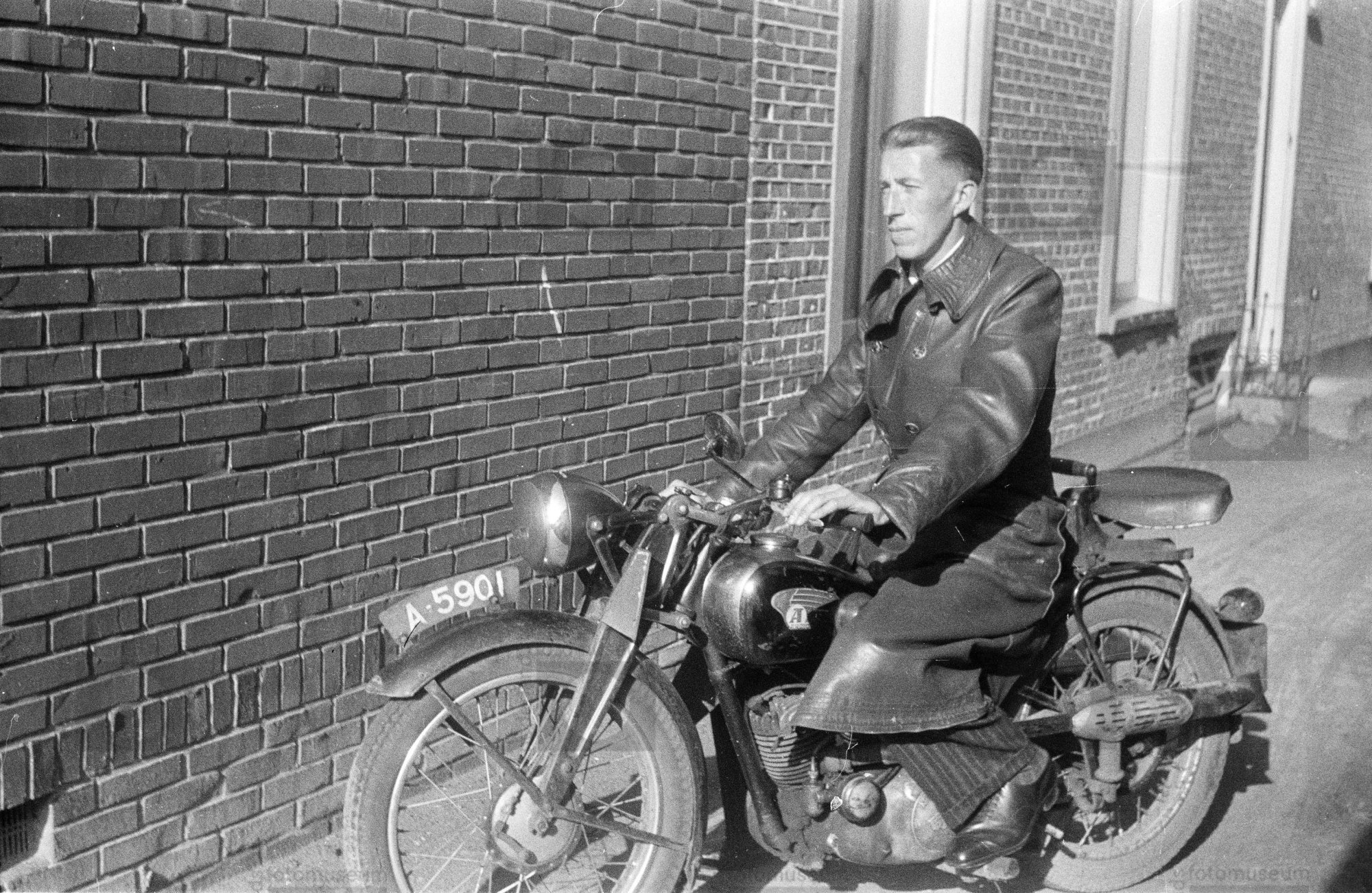 Fokko Fröling op motorfiets, Winschoten (1944)