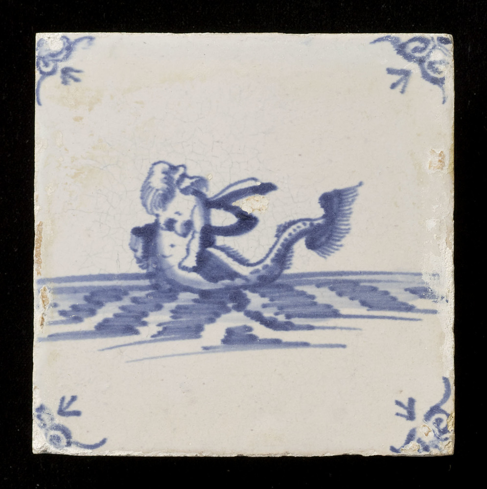 Tegel van keramiek, tinglazuur, voorstellende een my...