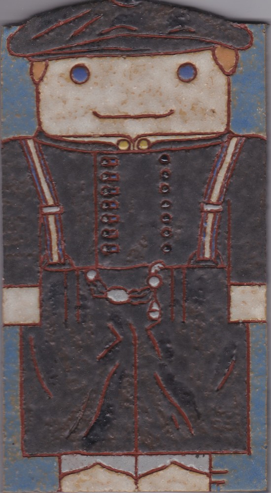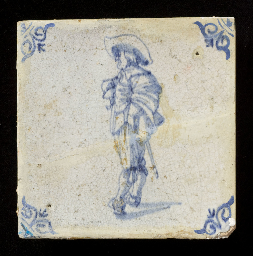 Tegel in tinglazuur, voorstellende schutter, vervaar...