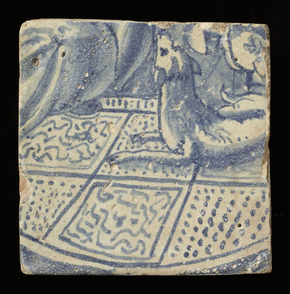 Tegel van keramiek, tinglazuur, voorstellende een be...
