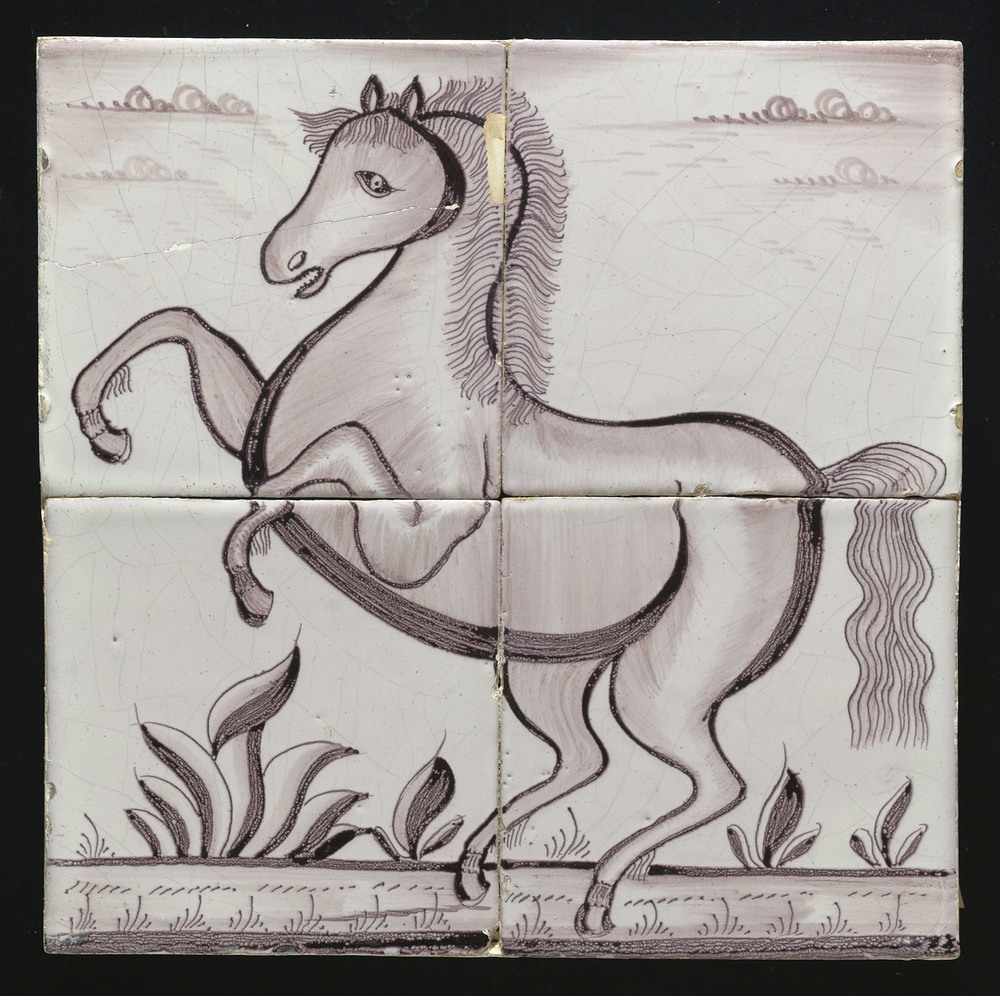 Tegel van keramiek, tinglazuur, voorstellende een ho...