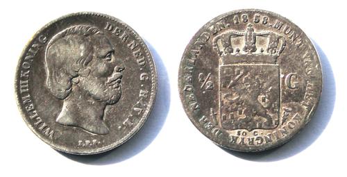Zilveren Nederlandse betaalmunt, ½ Gulden, 1858 - 1864