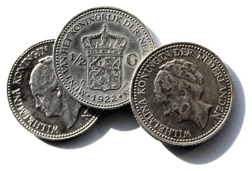 Zilveren Nederlandse betaalmunt, ½ Gulden, 1922 - 1930