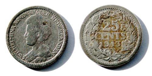 Zilveren Nederlandse betaalmunt, 25 Cents (kwartje) ...