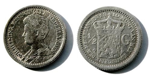 Zilveren Nederlandse betaalmunt, ½ Gulden, 1910 - 1912
